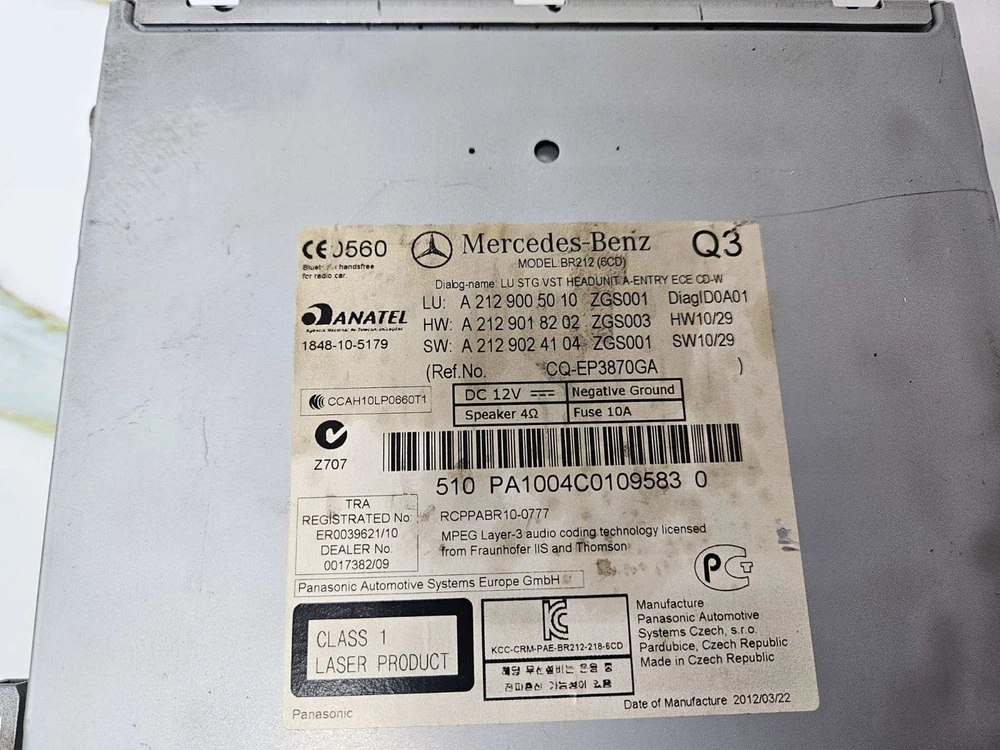 Product Information Mercedes-Benz E-Class W212 Audio CD Player Head Unit, part number A2129005010. Audio 20 CD system with 6-disc changer, MP3/WMA/AAC compatible, RDS twin tuner. OEM replacement component for dashboard installation. Payment Policy Shipping Policy Returns Policy Handling Time International Buyers - We accept only online payment methods provided by eBay at checkout. - We provide worldwide shipping to most countries using reputed couriers like DHL, FedEx or Aramex. - We accept 14-day returns. Please clarify all doubts before purchasing. - All packages are shipped within 3 working days. - Import Duties, Taxes and charges are not included in the item price or shipping cost. These charges are Buyer's responsibility. Please check with your country's customs office before buying.