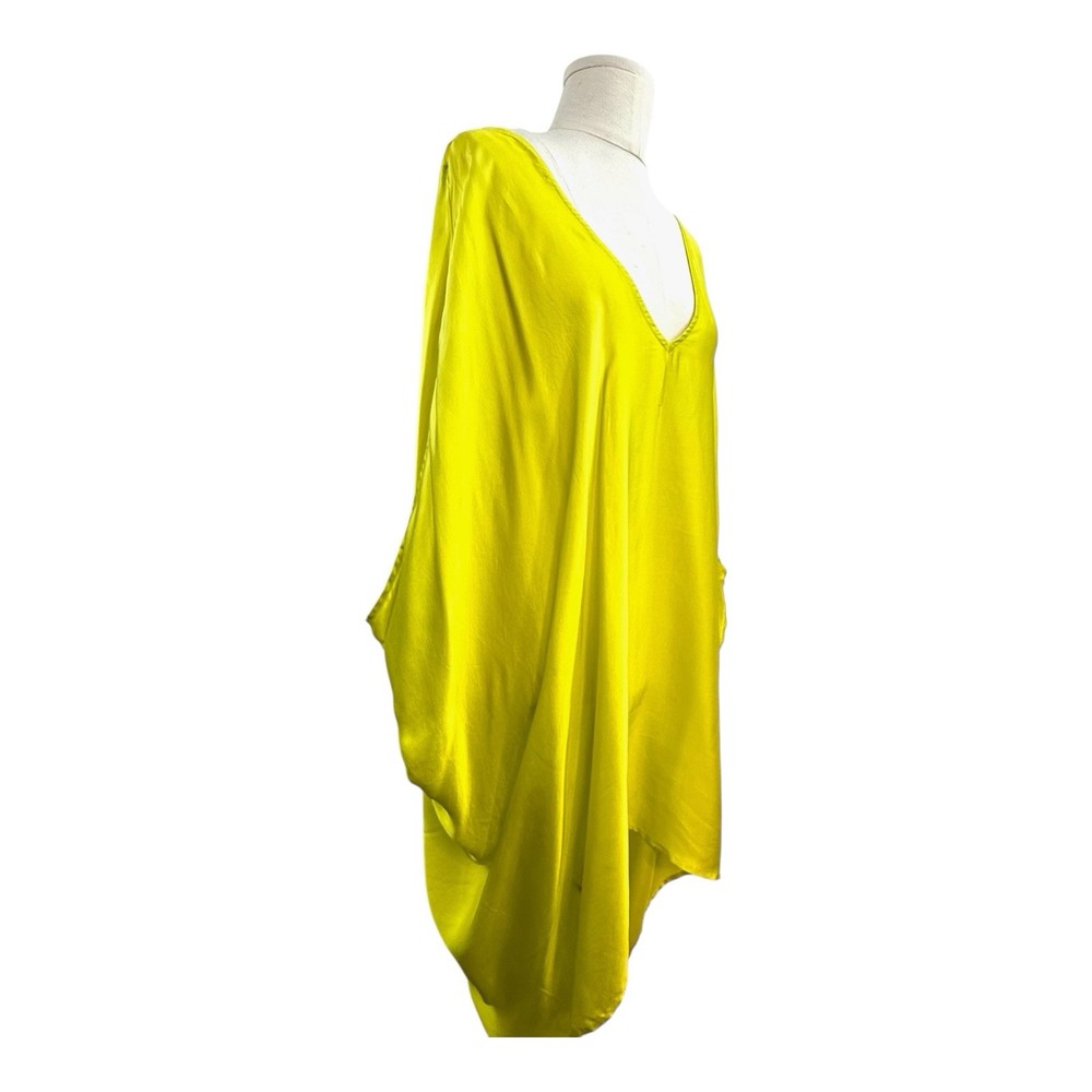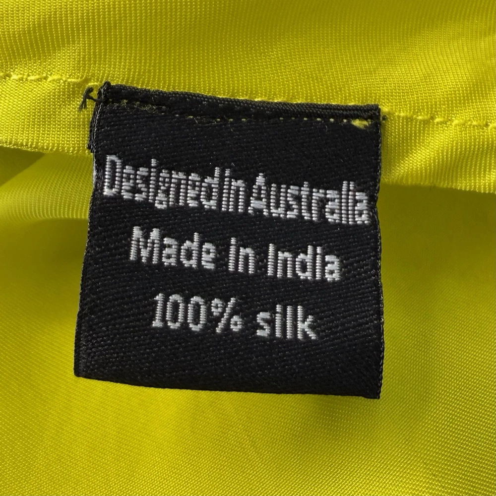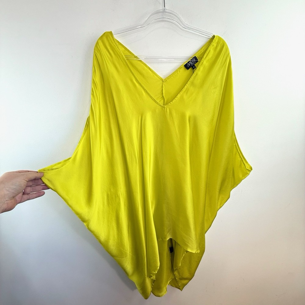 Welcome to Designer Loot and thanks for looking... The Meri By Design Size M 12 Acid Yellow/lime Green “Kyle” Top is a stunning addition to any wardrobe. Made from luxurious silk material, this designer blouse features a V-neckline, short sleeves, and a pullover closure for easy wear. The vibrant yellow colour adds a pop of brightness to any outfit, making it perfect for both casual and formal occasions. Pair this tunic top with your favourite pants or skirt for a stylish and chic look that is sure to turn heads. NWT RRP $180 Measurements, laid flat, unstretched, one side, in cm Underarm to Underarm 95 Shoulder to Hem 94 We sell carefully curated designer clothing and accessories, and add new pieces regularly. TERMS + CONDITIONS Please see our excellent feedback. We are proud of our level of service and strive to be honest and reliable sellers. Our items have been well cared for, but have had a previous life. New pieces may be slightly shop soiled. All obvious flaws and marks are described. Photos form part of the item description. Colours can differ on screens. We have a smoke free home. Please feel free to ask any questions. Payment is required within 4 days. We use prepaid tracked Australia post satchels within Australia. For combined shipments we will fit as many items as possible into pre-paid satchels. We usually post on the same business day. International Postage is usually $28. Taxes and duties are the buyer's responsibility. Please let us know if you think we've missed something, and we'll fix it. We offer a full refund service and we will fairly resolve any issue. Returns will only be considered within 7 days of the buyer’s receipt of the item. The item must be returned via tracked mail. Buyer pays return post (unless we are at fault). Please give five star feedback and thanks for shopping with Designer Loot.