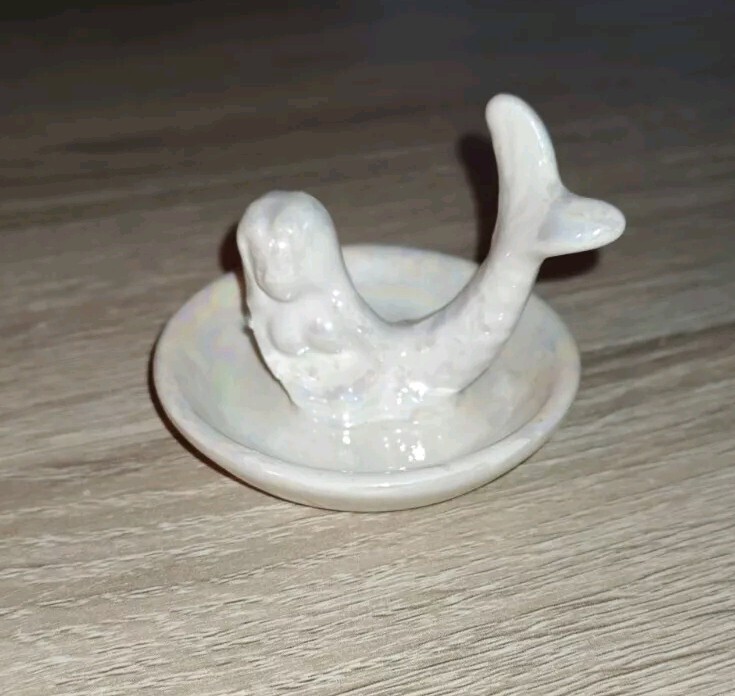 Mermaid Jewelry Dish Bracelet Ring Holder Valentine's Day Gift White Ceramic