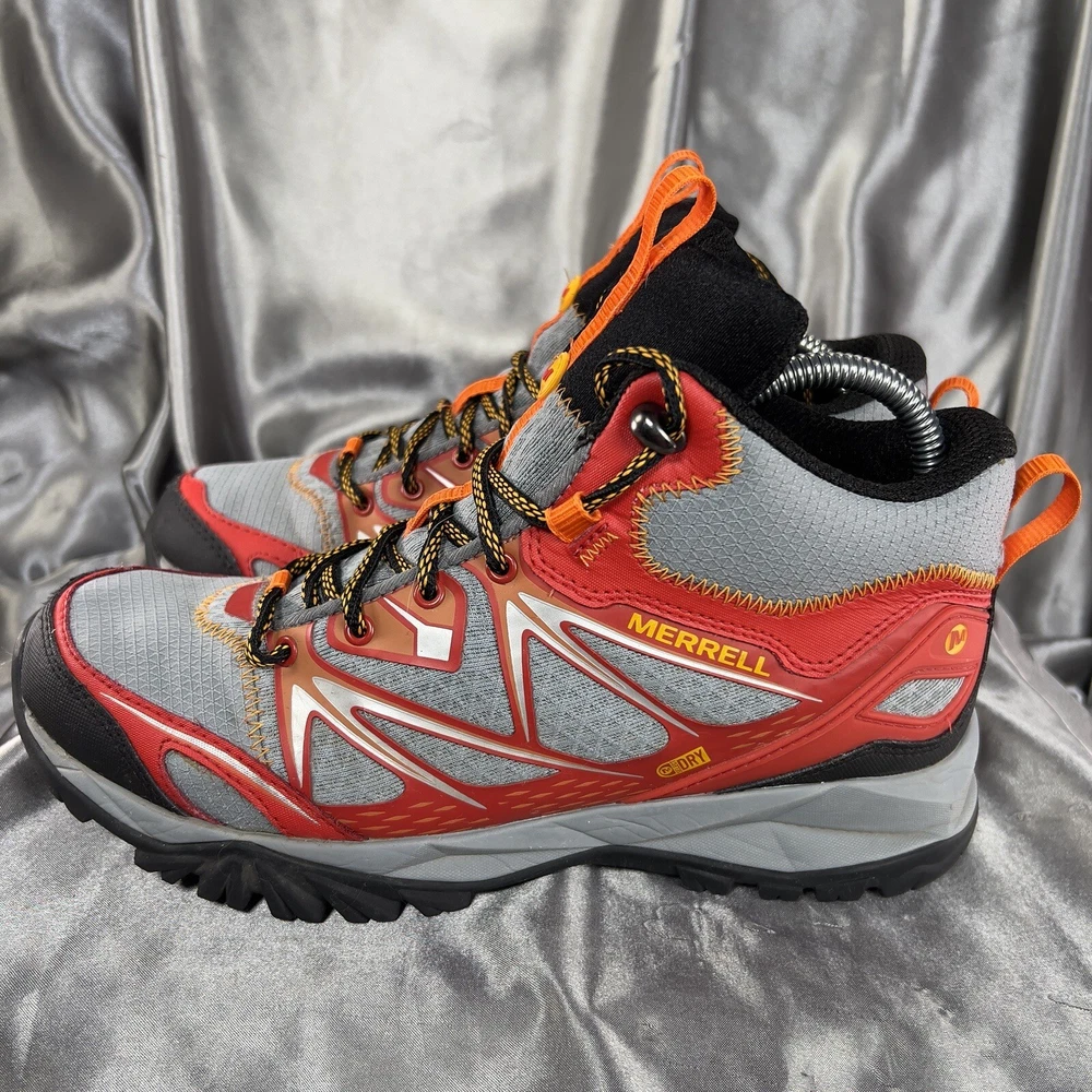 Merrell Capra Bolt Mid Waterproof Hiking Boots Men's Size 7 / EU 40 Red Gray Orange Gorpcore Men’s size 7 Women’s size 9.5 EU 40 No rips, stains, holes or tears 😍 Condition shown in photos Please make sure to view and zoom in on all photos to determine the condition of the shoes. Questions? Want more pics? Send a DM 🙂 📬 Ships same day or within 24/hrs! 🥳 Full refunds will be given for returned items sent in original condition.