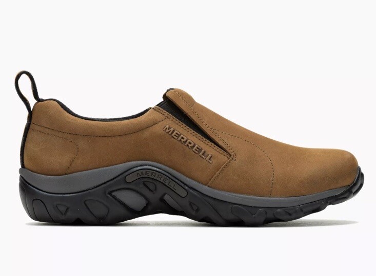 Enjoy the ultimate comfort and style with these Merrell Men's Jungle Moc Nubuck Clogs. These slip-on shoes are perfect for casual occasions and are available in a beautiful brown color. The shoes are made of high-quality nubuck material and feature breathable lining, arch support, cushioning, and comfort. These clogs are perfect for all seasons, whether it's winter, summer, fall, or spring. The shoes are designed for men and have a sneaker style. The Merrell brand is known for its quality products, and these clogs are no exception. Get your hands on these comfortable and stylish clogs today!