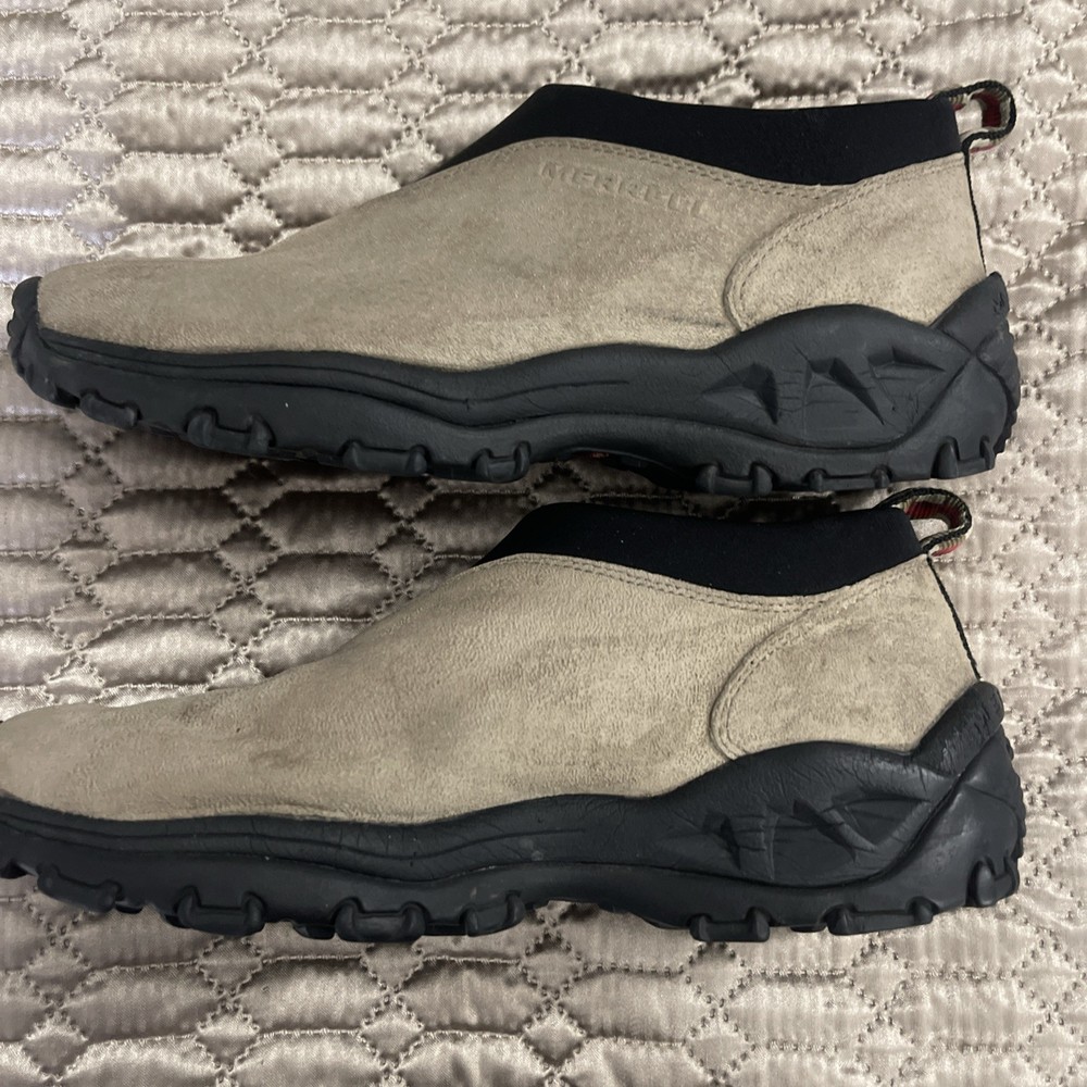 The Merrill Men's Slip-On Hiking Shoes in brown suede with a rubber sole are a versatile and comfortable option for outdoor activities. With a low top design and medium width, these shoes offer a balance of support and flexibility for hiking trails. The Merrell brand is known for producing durable and reliable outdoor footwear, making these shoes a good choice for adventurers seeking a reliable and stylish option for their hikes.