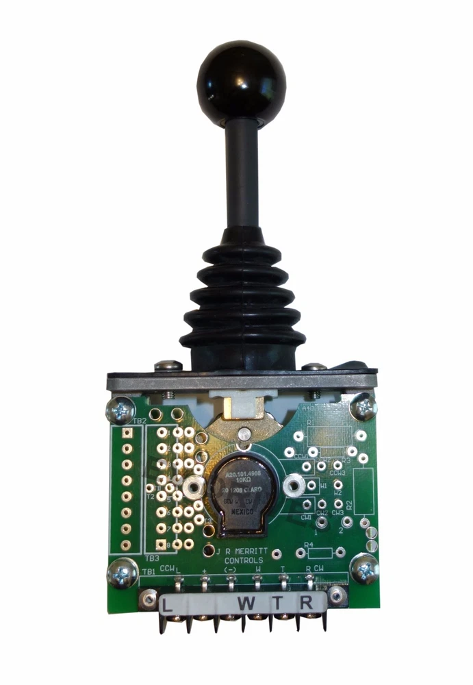 Merritt Joystick PRO-4 Single-Axis Throttle Control 0-5k Info: Configuration: Joystick with knob handle. Spring return to center (off) position. Detent at neutral/center position. Microswitches for driving forward and reverse contactor coils are automatically activated away from center position. Connections: 4 ea. pot connections have screw-terminals, 6 ea. microswitchconnections have 3/16" fast-on blades. Microswitches: 2 ea. SPDT rated at 11 amps, 120VAC Stroke: 36 degrees either side of center position Mounting: Panel-mountable with 3 holes. Center hole is 1.50" diameter. Materials: Molded plastic and rubber parts, diecast frame, printed circuit board. Dimensions: Actuator stick protrudes 3.6" above panel. Knob is 1.25" diameter. Base of unit is 3.1" H by 2.00" W by 3.4" L Wiring Details: W & T are used for a 0-5K, 2 wire ---- -- -- ---- RETURNS ---- -- -- ---- You must contact us by email for a Return Merchandise Authorization (RMA) number prior to returning an item to the manufacturer or to us. This RMA number must be clearly marked on the label attached to the shipping box. Packages without an RMA number will be refused and returned to the shipper. Warranty items returned with no fault found will be sent back to the customer at the customer’s cost, otherwise, a replacement will be sent. ---- -- -- ---- REFUNDS ---- -- -- ---- If you purchased by mistake and would like to return an item for a refund, a 10% restocking fee will apply for uninstalled parts and 30% for parts that have been installed that are tested functional. Shipping costs are non-refundable. ---- -- -- ---- WARRANTY ---- -- -- ---- Motors, motor controllers and battery chargers are covered by the manufacturer’s warranty. You can contact us for warranty issues and we will provide information on the return of your product to the manufacturer. All the rest of the products we sell are warranteed free of most defects for a period of 1 year from our customer’s date of purchase unless otherwise specified in the listing. EV Drives will not be liable for any cost of service calls, installation, alleged harm, both personal and materially and/or any other damages resulting from the installation of these parts.
