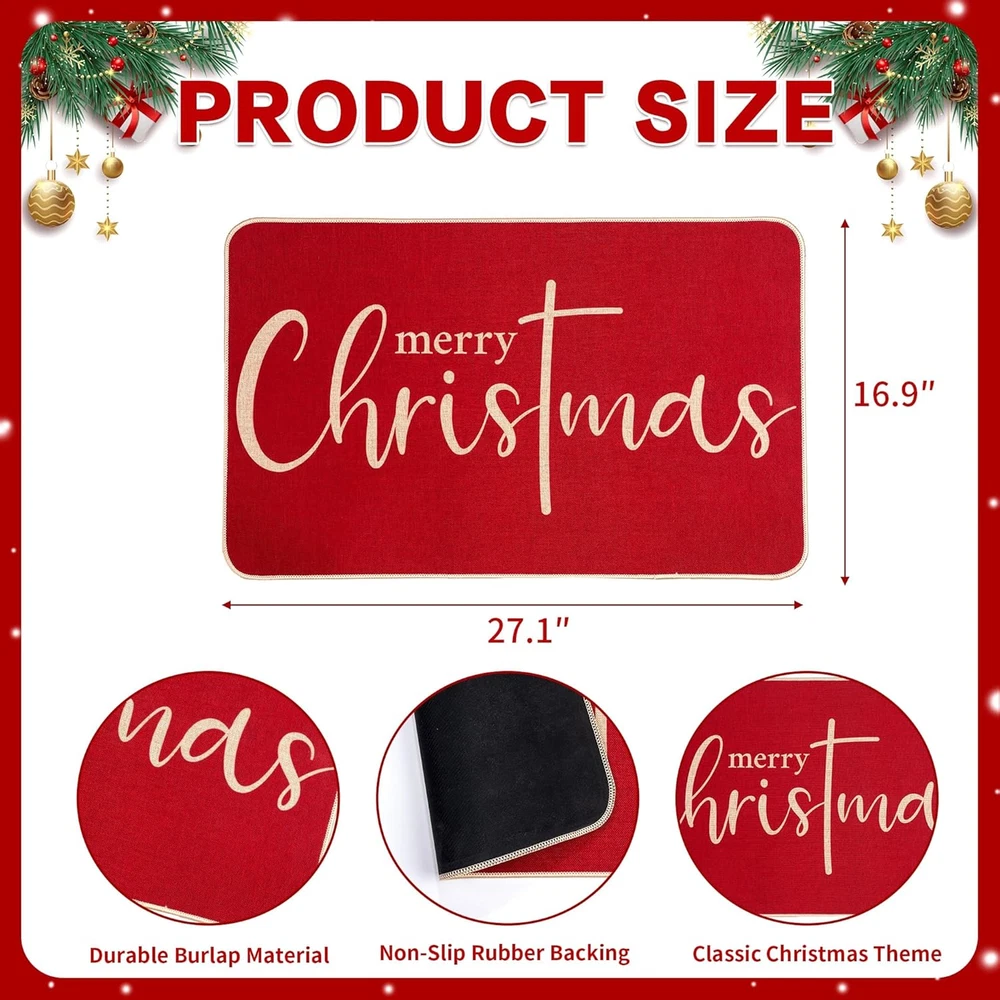 Store New Arrivals Add to Favorite View Feedback Contact Fast deliveries to the customer's home Quality customer service John Make the customers happy! Merry Christmas Door Mat Red Xmas Doormats Christmas Non-Slip Front Door Rubber Rugs for Entrance Porch Winter Holiday Outdoors Mat 17 X 27 Inch (Merry Chritmas) Description 【Stylish Christmas Door Mat】Embrace the festive spirit of winter with our beautifully designed welcome mat, featuring the iconic Christmas red color and the cheerful "Merry Christmas" greeting. This simple yet timeless combination adds a warm and inviting touch to your home, setting the perfect tone for the holiday season 【Quality Material】 Our elegant Christmas doormats are crafted with a durable burlap surface that offers a rustic, yet stylish appeal. The non-slip rubber backing ensures stability, keeping the mat securely in place. These mats are designed to effectively keep dirt and mud from entering your home, maintaining a clean and cozy environment during the holidays 【Practical Suitable Size】Measuring 17 by 27 inches, our Christmas welcome mats are the perfect size to fit most doorways. They provide a seamless blend of functionality and style, enhancing your entryway without overpowering it, and offering an attractive solution to keep your floors clean 【Great Winter Holiday Decorations】These versatile Christmas welcome door mats are ideal for decorating your home during the Christmas holiday season. Use them indoors or outdoors—they're so awesome for your living room, bathroom, kitchen, porch, patio, entryway, and more. Wherever you place them, they’ll add a touch of seasonal charm 【Adorable Gift for Christmas】Searching for the ideal Christmas houswarming gift? Look no further. These Merry Christmas welcome door mats are both cute and practical, making them a thoughtful present for friends and family. They're sure to be appreciated and used year after year 【Easy Maintenance】 Keeping your entryway looking fresh is a breeze with our Christmas welcome front door mats. Simply shake them out or give them a quick vacuum to remove dirt and debris. They're designed for easy maintenance, so your home stays clean and inviting. Also can be washed in water and dried in the sun before next use 【Customer Support】 We are committed to ensuring that you are completely satisfied with your purchase and overall experience. Whether you have questions about our trendy Merry Christmas Welcome Doormats, our team is ready to provide you with the support you need Product Description Item Shape Rectangular Weave Type Flat Woven Model Name doormats Color Merry Christmas Pattern Rustic Material Burlap, Rubber Item Weight 3 Kilograms Pile Height Low Pile Construction Type Handmade Back Material Type Rubber Item Dimensions L x W 27"L x 17"W ABOUT US We offer the best prices around on high quality products. Our E-store includes media such as books, movies, music and games while offering electronics, toys, sporting apparel, clothing, tools, general home, garden items and more. SHIPPING We are always working hard to ensure your package arrives as soon as possible. Please understand that some factors like weather, high postal traffic, and the performance of shipping companies are outside of our control. We offer free shipping to the lower 48 states and ship within 2 business days of payment, usually sooner. We do not accept P.O. Boxes. Please provide a physical address. For shipping outside of the continental USA, we only use eBay's Global Shipping Program. The item is shipped to KY and then sent to the rest of the world. International customers are responsible for all duties and taxes. Continue to 'check out' to calculate costs for shipping the item to your country. Messages regarding eBay's Global Shipping Program MUST be directed at eBay EXCLUSIVELY. RETURNS We offer a 30-Day Return Policy on items in which you are not completely satisfied with. You have the option of a full-refund or an exchange of the item. No returns are available on items shipped outside of the USA PAYMENT We accept PayPal. CONTACT US This page content is yet to come Please ad us to your favorite seller and visit again later Thank You CUSTOMER SATISFACTION We try our very best to make sure every customer is completely satisfied. If there's a problem, message us! We're happy to help. WE ACCEPT