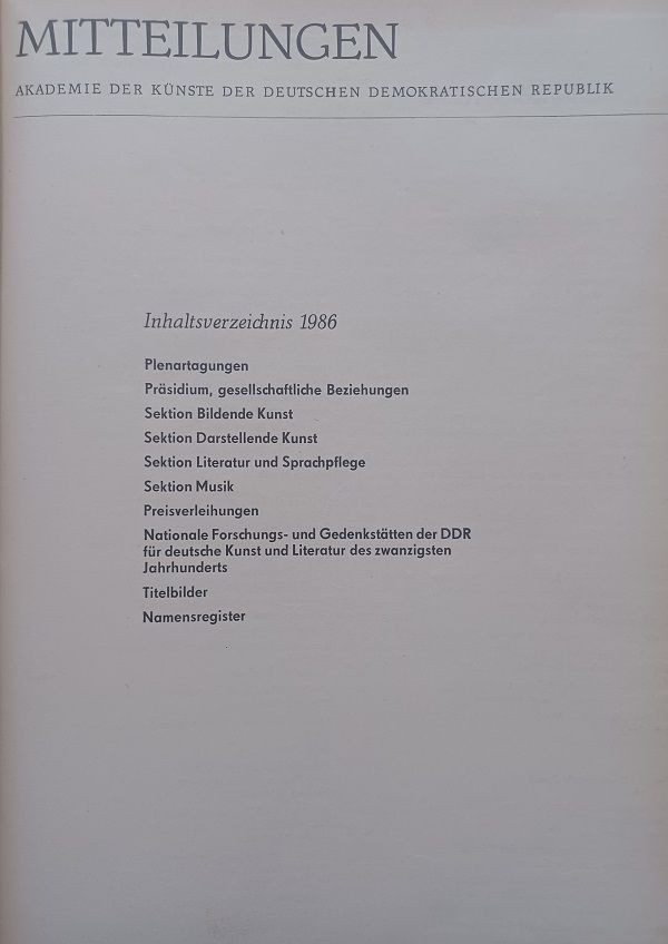 Messages. Academy of the Arts of the Germans D The description of this item has been automatically translated. If you have any questions, please feel free to contact us. Item details Notices. Academy of Arts of the German Democratic Republic (bundle lot). Berlin: Presidium of the Academy of Arts of the German Democratic Republic. 1969-1989. 18 volumes. approx. 29.5 x 20.5 cm. Depending on the band between approx. 140 and 180 pages, with numerous illustrations. Library cover with gold-embossed spine lettering. With slight signs of wear, pages partly. some light edges, some pages stamped and signed. Overall good to very good condition. (= messages. Academy of Arts of the German Democratic Republic, VII. Jg. - XXIV. Jg.). DEAR CUSTOMERS, WE ARE HAVING OUR ANNUAL CHRISTMAS PROMOTION WITH A FULL 30% DISCOUNT ON THE ENTIRE STOCK AND WE LOOK FORWARD TO YOUR INTEREST. (The discount is now already included in the displayed price) Language: German Order number: 6179C Remarks: Bi-monthly magazine of the Academy of Arts of the GDR with diverse contributions to Allen artistic areas of the 20th century. century incl. Research and archiving. Up to no. 5 In 1973 the magazine was still published under the title “Notifications of the German Academy of Arts in Berlin”. The collection contains the complete vintages from 1969 to 1986 incl. isolated supplements. - Jg. 1969: attached "Communiqué of the plenary session of 22. May 1969" and special issue "The Artist in the Class Struggle of Our Days". Jg. 1970: attached to "The Archives of the German Academy of Arts in Berlin". Jg. 1973: loosely attached "Contributions to the Music Forum in the GDR" and "Paul Robeson on his 75th birthday". Birthday". Jg. 1981: Bound "Special supplement to communications issue 1/81". Jg. 1984: loosely attached "Table of Contents 1984" (with tears and damage to the edges). Jg. 1985: in no. 5, a total of 8 pages are blank (printing errors). Jg. 1986: attached "The Members of the Academy..." and "The New Full Members of the Academy...". Keywords: Fine Arts, 1989, before, Academy of Arts, Awards, Berlin, Fine Arts, Performing Arts, GDR, GDR - Art, Commemorative Writings, Literary Studies, Music, Linguistics, Newspapers, Magazines More illustrations Item posted with the w+h GmbH eBay service Data and images powered by Book friend (2025-12-08) Berlin: Presidium of the Academy of Arts of the German Democratic Republic. 1969-1989. 18 volumes. approx. 29.5 x 20.5 cm. Depending on the band between approx. 140 and 180 pages, with numerous illustrations. Library cover with gold-embossed spine lettering. With slight signs of wear, pages partly. some light edges, some pages stamped and signed. Overall good to very good condition. (= messages. Academy of Arts of the German Democratic Republic, VII. Jg. - XXIV. Jg.). DEAR CUSTOMERS, WE ARE HAVING OUR ANNUAL CHRISTMAS PROMOTION WITH A FULL 30% DISCOUNT ON THE ENTIRE STOCK AND WE LOOK FORWARD TO YOUR INTEREST. (The discount is now already included in the displayed price) Language: GermanOrder number: 6179CRemarks: Bi-monthly magazine of the Academy of Arts of the GDR with diverse contribu
