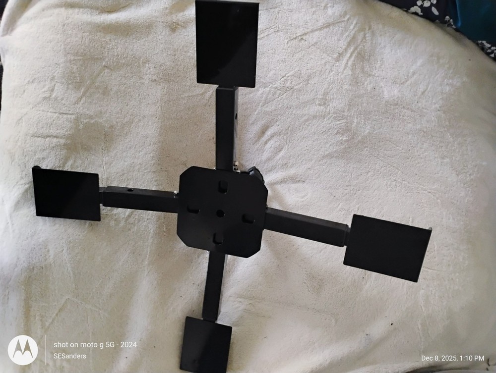 Sturdy large folding metal base for artificial Christmas tree or patio umbrella Maylai brand Open box NEW Closed: 5x5x10 Extended: 22x22x7 Questions? Please ask! Shipping can be combined on multiple items. Recycled shipping materials are used whenever possible. All items ship from a pet-friendly environment. Thank you for looking!