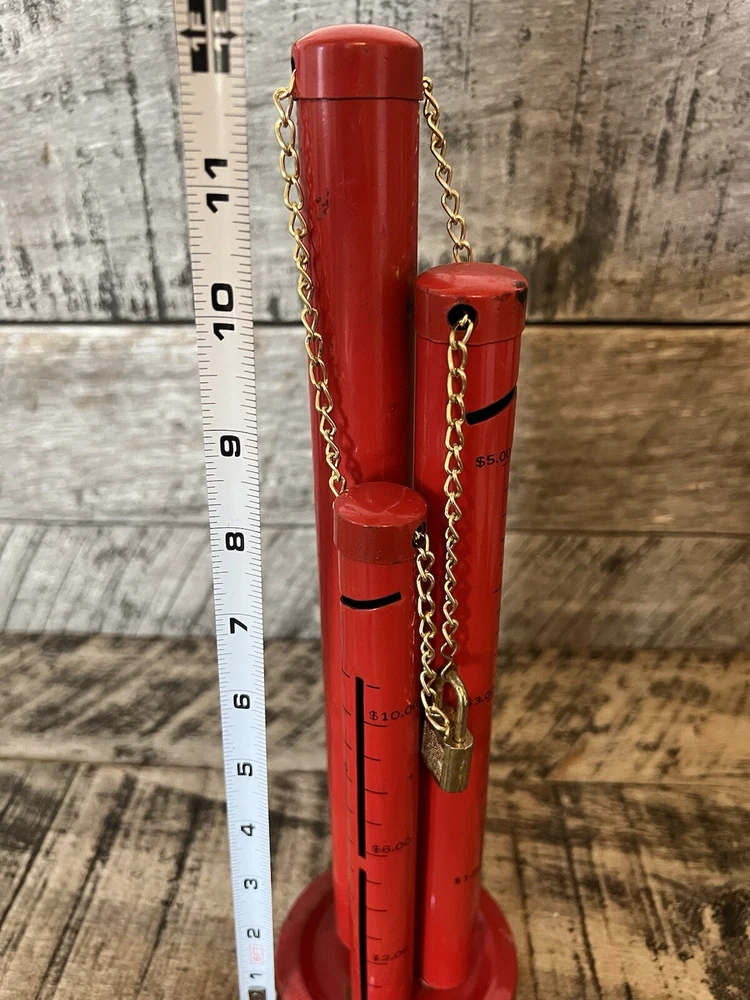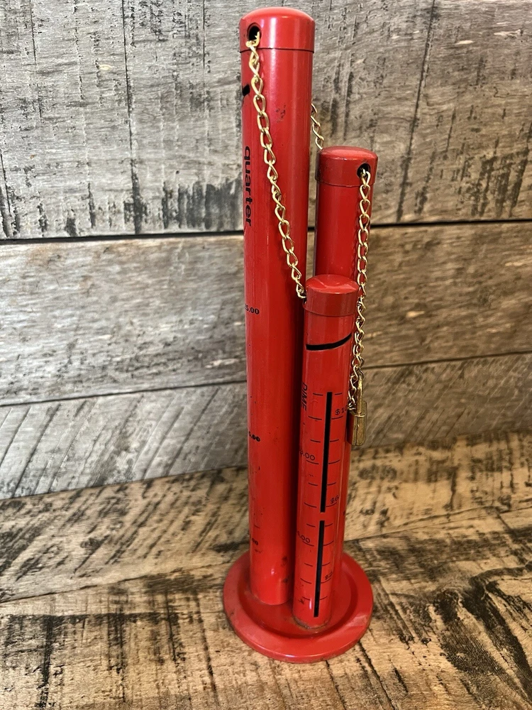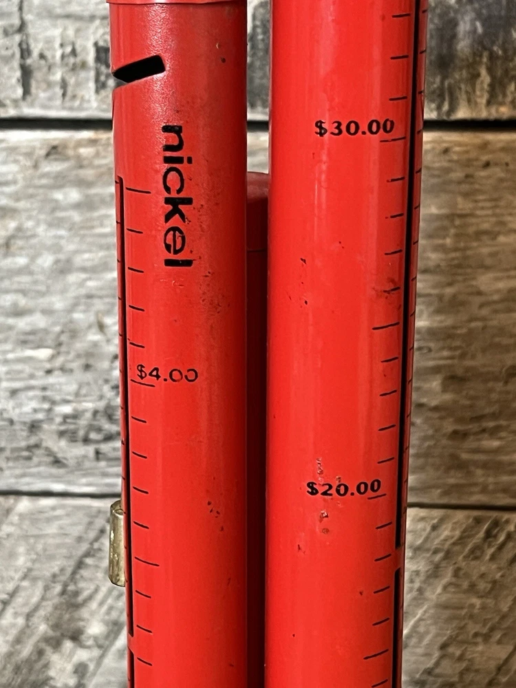 Metal 3 Tower Coin Sorter Triple Tub Bank Quarter Dime Niclel Red. 12 inches tall