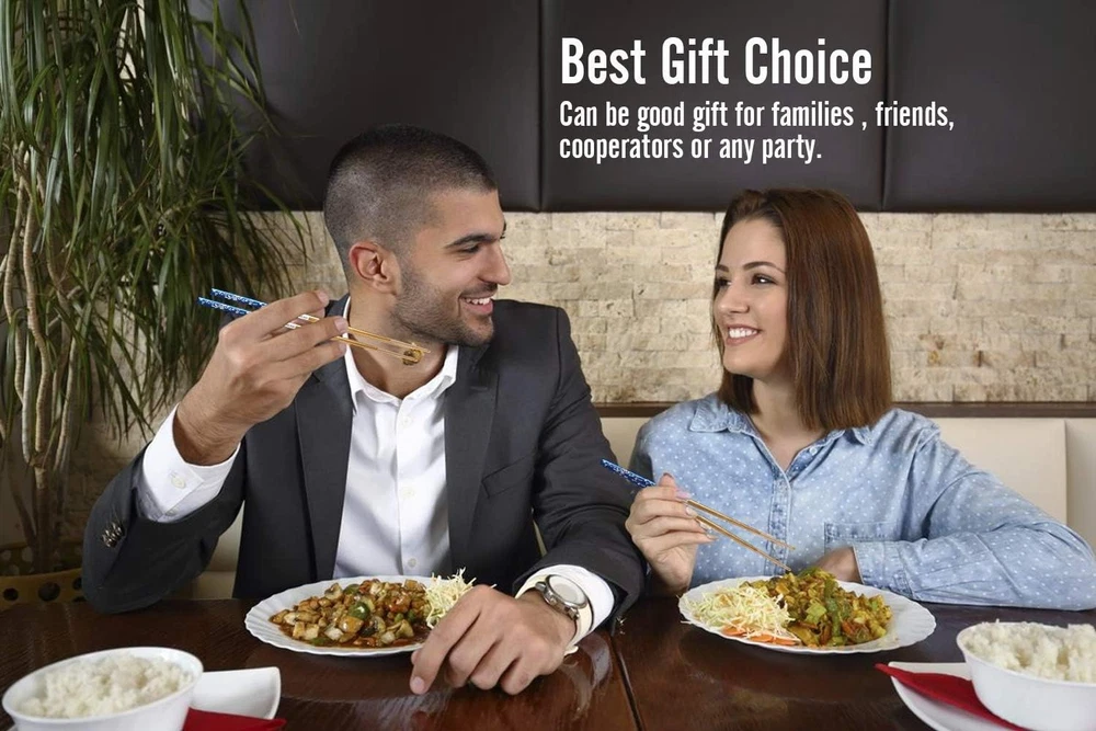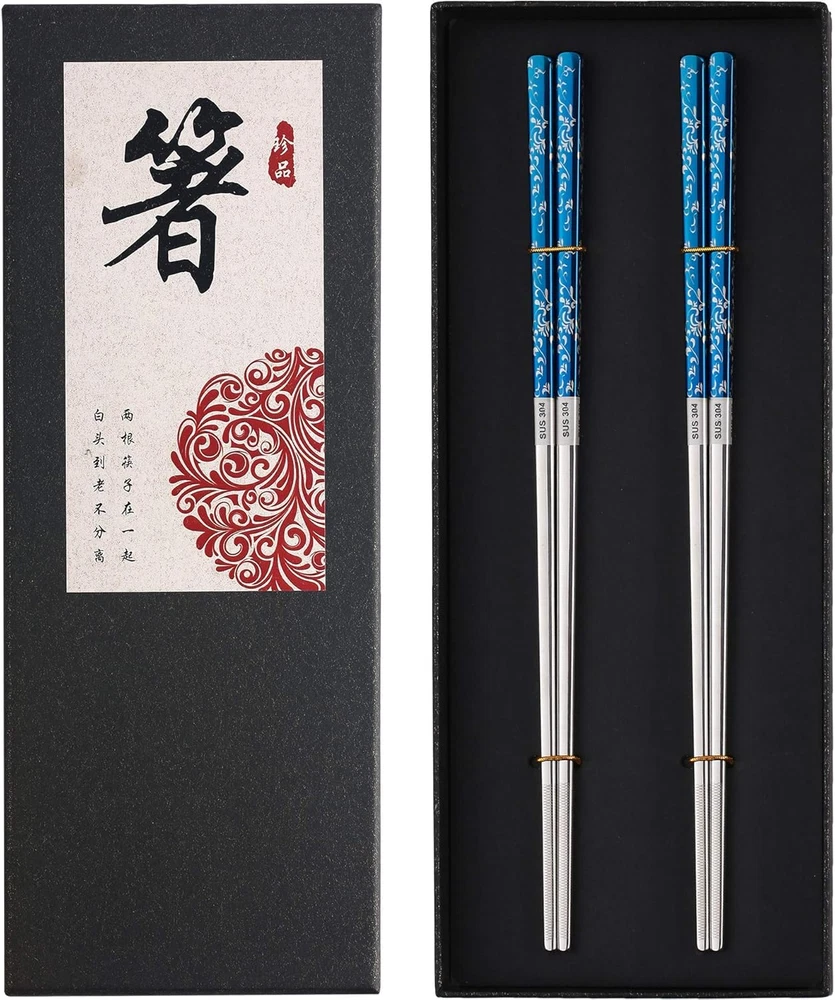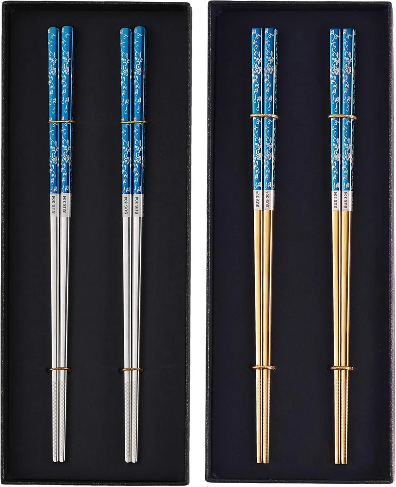 Store New Arrivals Add to Favorite View Feedback Contact Metal Chopsticks Titanium Plated Stainless Steel Chopsticks Reusable Dishwasher Safe Japanese Korean Chopstick Lightweight Anti-Slip Chop Sticks 2 Pairs Blue Gold and 2 Pairs Blue Silver Bundle Set Description Pattern Floral Material Wood, Stainless Steel, silver, Plastic, Bamboo Number of Sets 4 Item Length 9.25 Inches Product Care Instructions Dishwasher Safe ✿ 【Elegant Pattern】: The metal chopsticks are made of SUS304 stainless steel with laser engraved flower vine pattern on the titanium plated blue surface. Titanium is an excellent material that is used on premium flatware. It is a permanent plating. No peeling or discoloration after a long time of use. The titanium plating on the stainless steel chopsticks makes the reusable chopsticks sturdier and not easy to scratch. The stainless steel chopsticks are sturdy, reusable, almost indestructible. ✿ 【Upgraded Non-slip Design】: Our metal chopsticks add fashion line laser engraving on the tip of the chopstick. Comparing with the round spot etching chopstick and the smooth chopstick, the chopsticks with line engraving on chopsticks tip can better grab and keep the food. It makes the stainless steel chopsticks easy to use and avoids the embarrassment of dropping the food. The traditional metal chopsticks are kind of slippery due to its smooth surface. This design resolves the slippery issue. ✿ 【Dishwasher Safe and Healthy】: The stainless steel chopsticks are dishwasher safe. It stands all the temperature during cooking and eating and washing without the worry of melting or destroying issue. The bamboo chopsticks and wood chopsticks must be replaced every three months as they get moldy easily for the fact that they gain dirt residue during use and hard to clean up. The metal chopsticks are easy to clean and free from the moldy issue. It saves the money of replacing the chopsticks. ✿ 【Gift Choice】: The metal chopsticks are with a pretty flower vine pattern on the blue background at the end of the chopstick. The elegant looking and the gift box package make the stainless steel chopsticks a very good presentation. Chopsticks mean good cooperation and best friendship. So they are a nice gift to friends, lovers, families, and cooperators for special days, like Christmas, birthdays, festival days. The reusable chopsticks use the longer and the love you present will last longer. ✿ 【Eco-Friendly】: One pair of metal chopsticks can be used for 10 years or even times longer. One pair of wooden chopsticks can be used for three months. One pair of disposable chopsticks can be used for once. So suppose one person uses chopsticks twice a day, one pair of metal reusable chopsticks equal to 40 pairs of wooden chopsticks, or 7300 pairs of disposable chopsticks. Thinking of the tons of chopsticks turn to rubbish every year, the stainless steel chopsticks are really Eco-friendly. Our chopsticks are square metal chopsticks made of food-grade 304 stainless steel with permanent titanium plating&laser etching flower vine pattern body and nonslip line laser engraving tip. Why choose our chopsticks? ✿ Eco-Friendly and Durable The stainless steel chopsticks are very sturdy and durable. They can be used for 10 years or even longer. Usually, one pair of fiberglass chopsticks use for 1 year. One pair of wood chopsticks use for 3 months. One pair of disposable chopsticks use for once. Suppose one uses chopsticks twice a day, one pair of metal chopsticks equal to 10 pairs of plastic fiberglass chopsticks or 40 pairs of wood chopsticks or 7300 pairs of disposable chopsticks. Using metal chopsticks saves a lot of money and saves the earth from plastic/disposable chopsticks rubbish pollution. ✿ Titanium Plated Our metal chopsticks are made of food-grade 304 stainless steel with permanent titanium plating. The titanium plating is pretty and helps reduce the scratches. ✿ Anti-slip Design With upgrade line laser etching on the square chopsticks tip, our metal chopsticks are easier to grab and hold food than the round smooth metal chopsticks. ✿ Dishwasher Safe They are reusable chopsticks, dishwasher safe, easy clean, no worry of damage. ✿ Sanitary and Healthy The metal chopsticks are with smooth and hard surface. The bamboo chopsticks and wooden chopsticks get moldy easily as they gain food residue during use owning to their loose construction. The metal reusable chopsticks are free from the issue. ❥ Chopsticks Specification Chopsticks Length: 9 1/4 Inches (23.5cm) long Chopsticks Weight: 1.2 ounce (34g) per pair of metal chopsticks Chopsticks Material: 304(18/8) stainless steel with titanium plating Color: blue/silver,blue/gold ❥ Package 2 Pairs blue silver set+2 pairs blue gold set ABOUT US We offer the best prices around on high quality products. Our E-store includes media such as books, movies, music and games while offering electronics, toys, sporting apparel, clothing, tools, general home, garden items and more. SHIPPING We are always working hard to ensure your package arrives as soon as possible. Please understand that some factors like weather, high postal traffic, and the performance of shipping companies are outside of our control. We offer free shipping to the lower 48 states and ship within 2 business days of payment, usually sooner. We do not accept P.O. Boxes. Please provide a physical address. For shipping outside of the continental USA, we only use eBay's Global Shipping Program.The item is shipped to KY and then sent to the rest of the world. International customers are responsible for all duties and taxes. Continue to check out in order to calculate costs for shipping the item to your country. Messages regarding eBay's Global Shipping Program MUST be directed at eBay EXCLUSIVELY. RETURNS We offer a 30-Day Return Policy on items which you are not completely satisfied with. You have the option for a full-refund or an exchange of the item. No returns are availabl