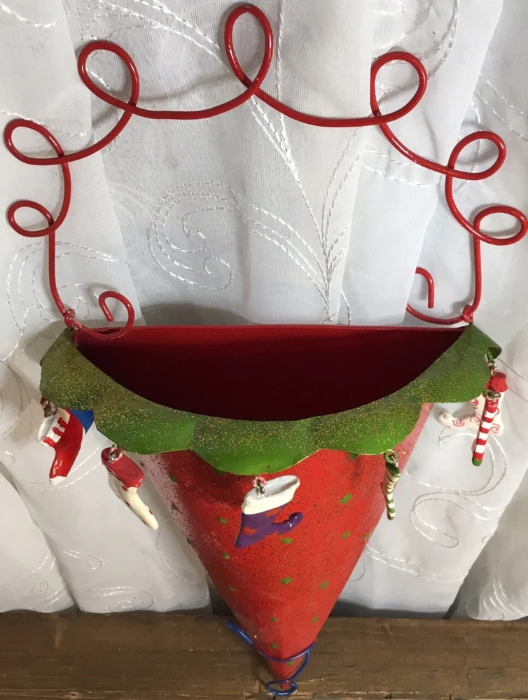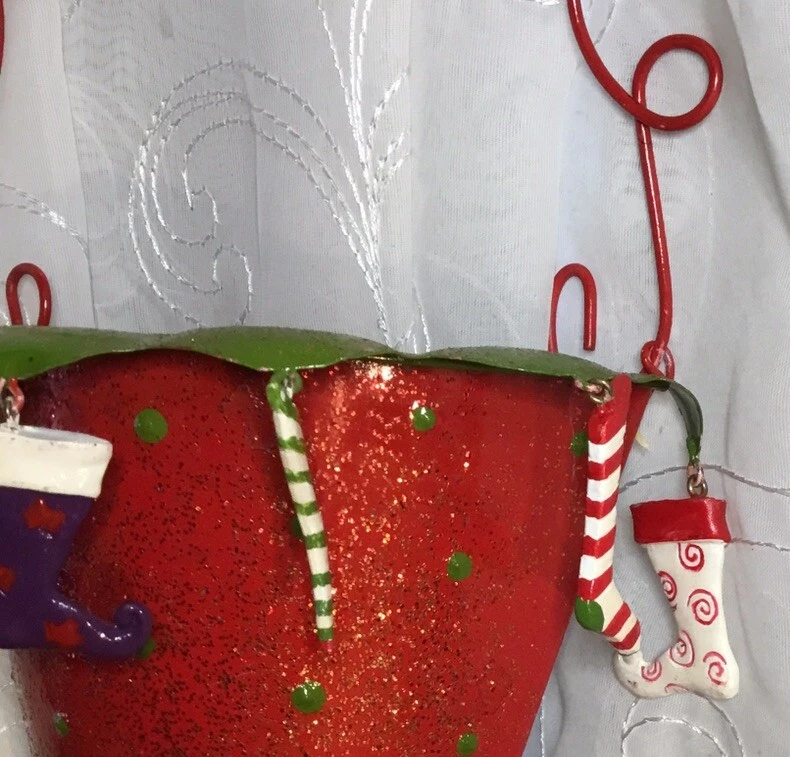 Add a festive touch to your Christmas decor with this metal wall hanging decor. This glittery piece is sure to catch the eye of your guests. Crafted from high-quality materials, it is durable and long-lasting. Ideal for the holiday season, it is a great addition to your home decor. Whether you are looking to add a touch of elegance to your living room or create a cozy atmosphere in your bedroom, this Christmas stocking is the perfect choice. Measurements approximately: 15-1/4’ tall with handle 10-1/4’ tall without handle 7-3/8’ wide 3-1/4’ deep
