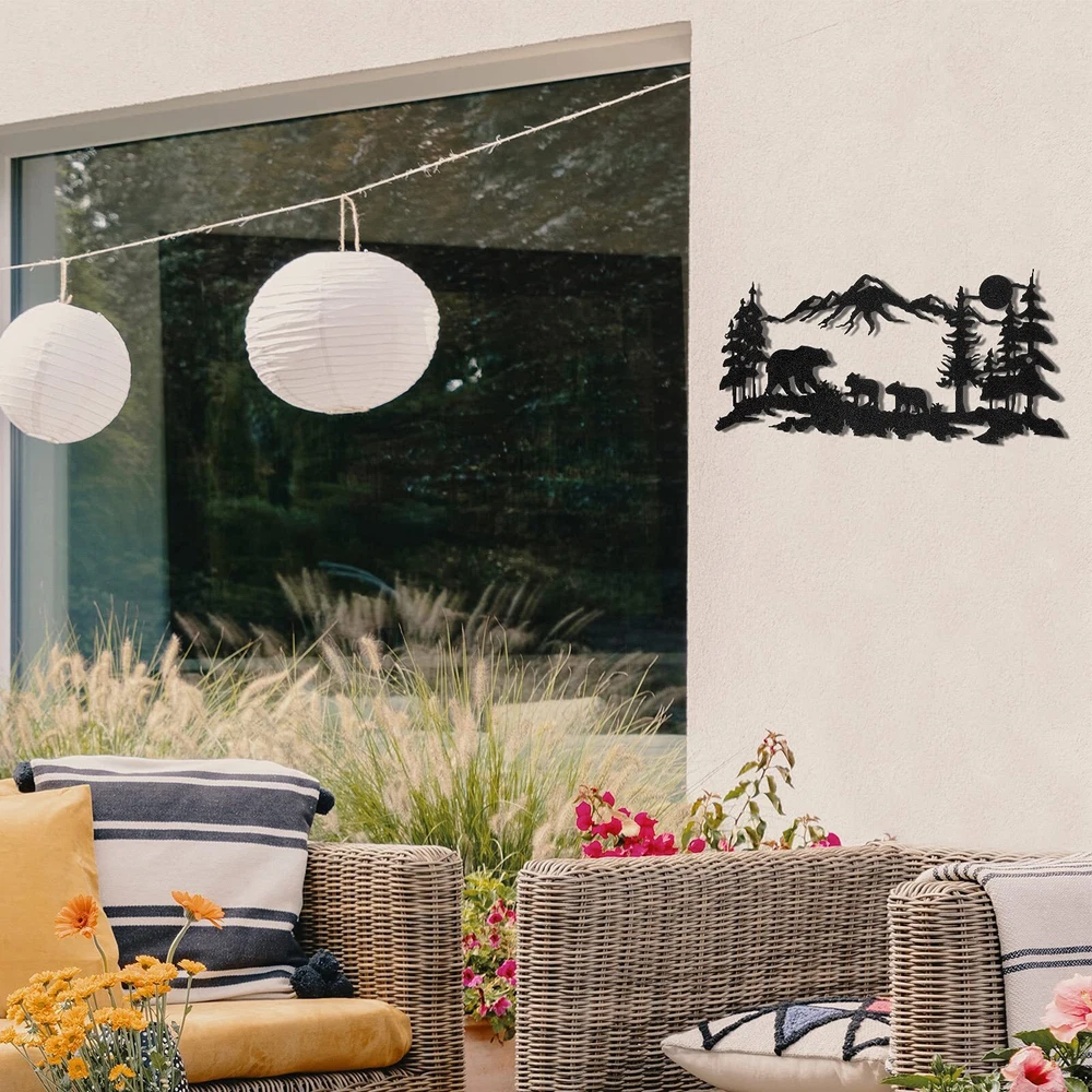 Features: Wide applications: The monogram metal sign can be extensively applied for indoors and outdoors, such as home, restaurant, hotel, living room, yard, garden, balcony or other places, also you can adorn it on the wall, door, shelf, window and more. More usages are waiting for you to explore. Classic style: The hanging outdoor metal sign featured with black, classic and simple, easy for you to well match with other home decorations, even can keep consistent with your room style, the first choice for you to renovate your house, bringing you a refresh feeling. Specifications: Material: metal Color: black Size: about 30 x 17.5 cm/ 11.8 x 6.9 inches Package includes: 1 x Metal wall decor Notes: Manual measurement, please allow slight errors on size. The color may exist slight difference due to different screen displays. The nail is not included in the package, please kindly note. Exquisite design: our metal sign for outdoors is designed around animals in the forest, like bear, and adding forest, pine tree, mountains and more, vivid and lifelike, black metal sign gives people classic and elegant feeling Suitable size: the primitive bathroom wall art measures approx. 30 x 17.5 cm/ 11.8 x 6.9 inches, proper size for you to nicely decorate your living room, bedroom, study room, making your home look more charming, and showing your artistic taste to your guests Quality and lasting: the metal sign is made of wearable metal material, fine workmanship and painting make it keep glossy for a long time, not easy to rust or fade over time, please get assured to use in daily life How to install: there are 2 holes on the surface of the forest wall decor, you can directly hang it on the wall with nails (not included), or decorate it in other places that you want, not easy to fall or swing, because it can fit tightly to the wall and does not bulge Nice gift: the bear metal sign decor is very cute and meaningful, very suitable for you to send your friends, newlywed, families, neighbors or colleagues as a birthday gift or housewarming gift; They will be happy to receive such a chic gift