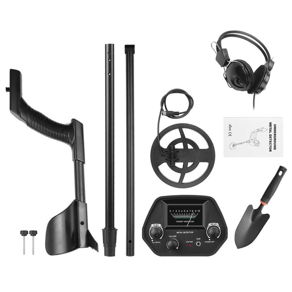 Need to find gold & silver jewelry, coins and other metal in the ground? Try this one. With this powerful and versatile metal detector, you can hunt for coins, relics, jewelry, gold and silver everywhere. It is also widely used in detecting aluminum, copper and rare metals and anywhere that hidden metal needs to be detected. Features: Practical Metal Detector: perfect for finding metal objects and anywhere that hidden metal needs to be detected. Besides, this easy to operate metal detector suitable for research or educational use as well. Designed to Find Metal: with ALL METAL & DISC two modes to search gold & silver jewelry, coins and other metal in the ground. Adjustable Height of Metal Detector: adjust the detector's length for comfortable use. Detection Indication: audio alert and pointer indicate the detection of metal. Waterproof Search Coil: you can use the metal detector in the shallow water. Volume Control: adjust the output volume of the loud speaker or headphone. Wide Applications: testing metal foreign body of raw materials, fuel and food, detection of underground pipeline & line, archaeology, exploration, found buried treasures of gold, silver and metal artifacts, the acquisition of scrap metal industry, customs and safety inspection, police department detective search, checking metal foreign bodies in express delivery and luggage, etc. Headphone Jack: provided for headphone connection, headphone with 3.5mm jack can be used. Specifications: Type:With Headphone & Plastic Shovel Material: ABS plastic + aluminum Frequency: 6KHz Voltage Range: 7.2~9.6V Display Mode: Mechanical indicator mode, sound mode Operating Mode: All metal, disc Sensitivity: >18cm / 7.09" (Test Coin: 1 CNY) Distinguish: Ferrous and non-ferrous Sensitivity: Adjustable Volume: Adjustable Headphone Jack: 3.5mm Battery Condition Indicator: YES Detect Objects: Metal(Iron nail, iron covering, aluminum ring, small aluminum product, coins, gold, bronze, silver) Detection Depth: 15-30cm / 3.94-11.81inch Power Supply: 2 * 6F22 9V battery (NOT included) Search Coil Diameter: 202mm / 7.95in Adjustable Height of Detector: 82-113cm / 32.28-44.49inch Metal Detector Weight: 350g / 12.35oz Package Size: 45 * 21 * 11cm / 17.72 * 8.27 * 4.33in Package List: 1 * Metal Detector Main Unit 1 * Armrest 2 * Connecting Rod 1 * Search Coil 1 * Plastic Shovel 1 * Headphone 1 * User Manual (English) Your satisfaction is our eternal pursuit