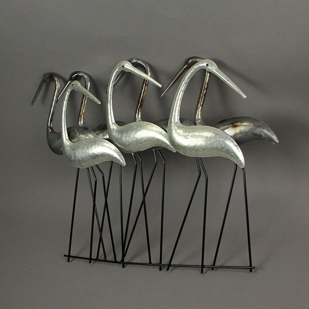 Let your home decor take flight with this sculpture of a flock of coastal birds. Creatively crafted from metal for years of maintenance free display, the the subtle painted accents makes for a great centerpiece sculpture that compliments a variety of ocean, beach, and other nautical decorative styles. Measuring 22.75 inch wide, 3 inch depth, 15.5 inch high; the built-in hangers approximately 10.5 inch apart make it quick and simple to mount in your living room, kitchen, bedroom, bathroom, den, or patio space. Makes a wonderful gift for yourself or bird loving friends and family. Our eBay Store About Us Add to Favorite Sellers Metal Flock Of Coastal Birds Wall Art Sculpture Hanging Ocean Beach Home Decor OVERALL SIZE - 22.75 Inches Wide, 3 Inches in Depth, 15.5 Inches High DURABLE MATERIAL - Crafted of High Quality Metal For Years of Maintenance Free Display COASTAL DECOR - Metal Finish With Painted Accents For A Sculpture That Compliments A Variety Of Beach And Ocean Styles EASY INSTALL - Built-in Hangers ~10.5 Inch Apart For Quick And Simple Mounting (hardware not included) GREAT GIFT - For Yourself Or Friends And Family Let your home decor take flight with this sculpture of a flock of coastal birds. Creatively crafted from metal for years of maintenance free display, the the subtle painted accents makes for a great centerpiece sculpture that compliments a variety of ocean, beach, and other nautical decorative styles. Measuring 22.75 inch wide, 3 inch depth, 15.5 inch high; the built-in hangers approximately 10.5 inch apart make it quick and simple to mount in your living room, kitchen, bedroom, bathroom, den, or patio space. Makes a wonderful gift for yourself or bird loving friends and family. Product Details Color Grey Height 15.5 Length 22.75 Weight 1.5 LB