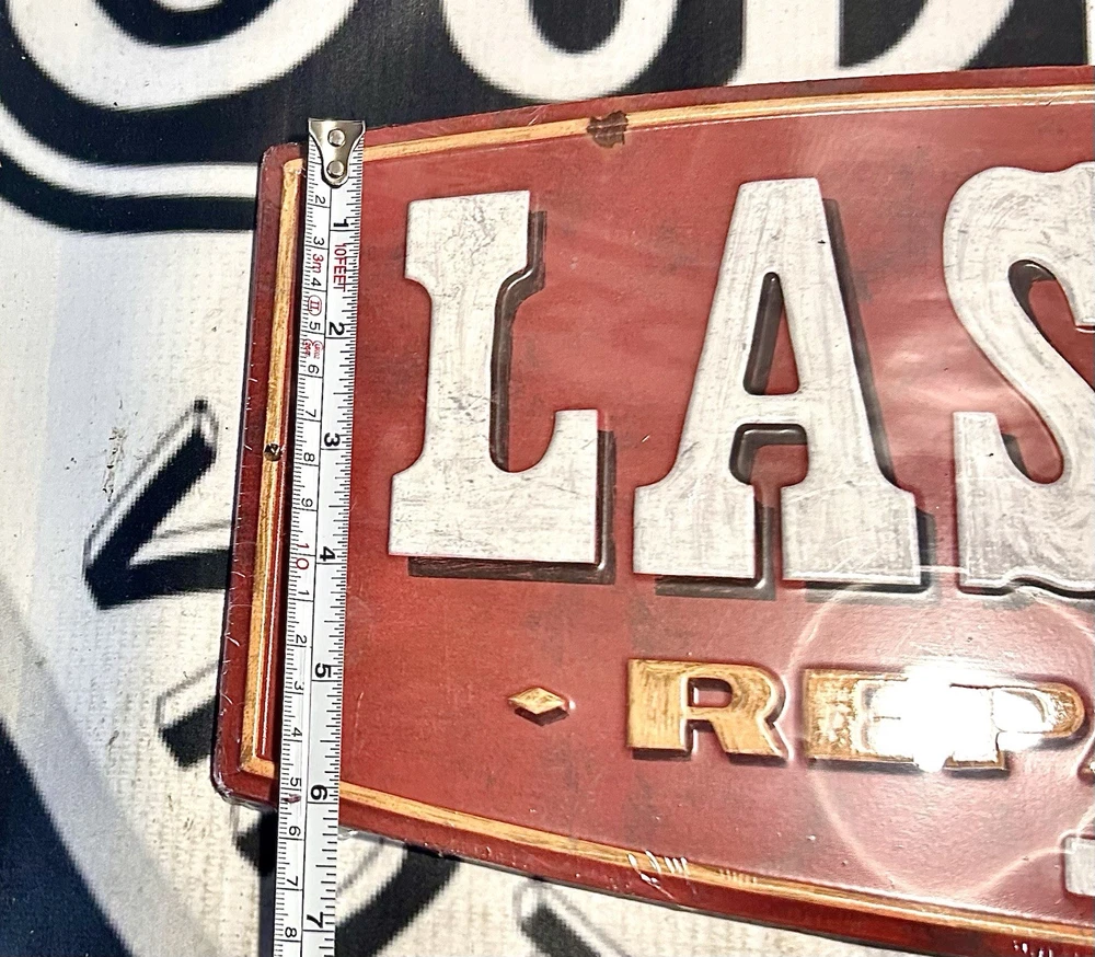 😮 AMAZING PRICE 🤯 *New in packaging* (New old stock). The Metal Sign 'Last Stop Repair Shop Relax I Can Fix It' by Open Road is a unique and nostalgic piece perfect for a garage or mancave. Measuring 23 x 8 inches, this sign features a retro design with a theme of cars, vehicles, and Route 66 advertising. Made of durable metal, it adds a touch of whimsy and character to any space, making it a standout decorative collectible for car enthusiasts and collectors alike. 🚨If you want to BUY NOW, send a fair offer🚨 💨 *FAST SHIPPING*💨 Check out my profile for other Collectibles, Antiques, Vintage, & Essentials.
