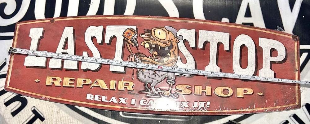 🚨Metal Sign ‘Last Stop Repair Shop Relax I Can Fix It’ 23 x 8 in Garage Mancave