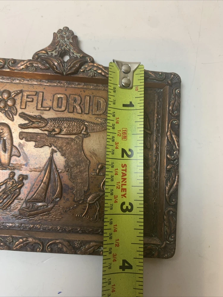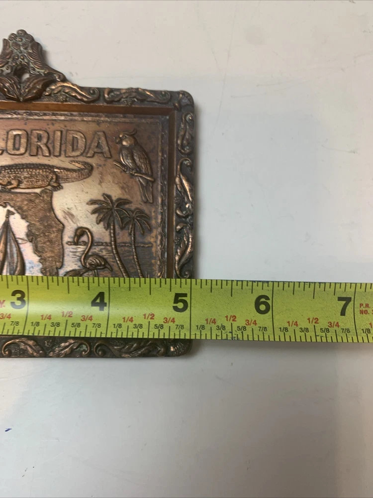 This metal wall thermometer is a unique and collectible item that will add a touch of Florida souvenir to any indoor space. Measuring 5"x4", it features an ornate design and brown color that will complement any decor. Perfect for those who love collecting advertising and merchandise memorabilia, this thermometer is a great addition to any collection. Its type of advertising is a sign, making it a perfect choice for those who want to add a vintage touch to their collection.