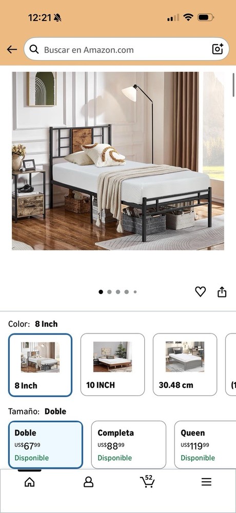 Metal Twin Bed Frame W/ Upholstered Headboard 12 Inch Storage Noise Free New