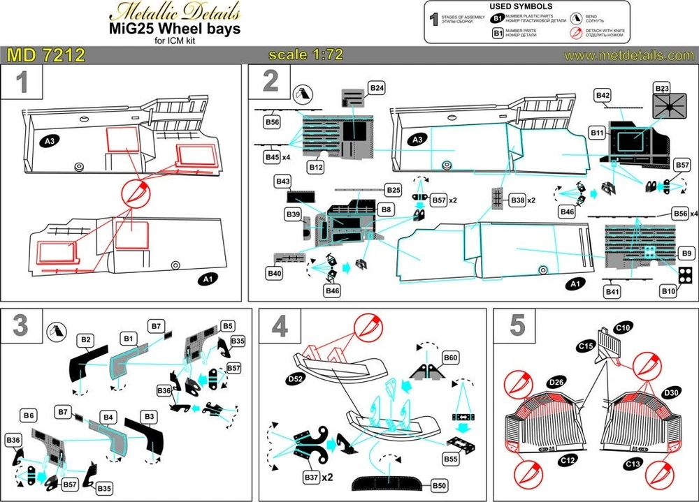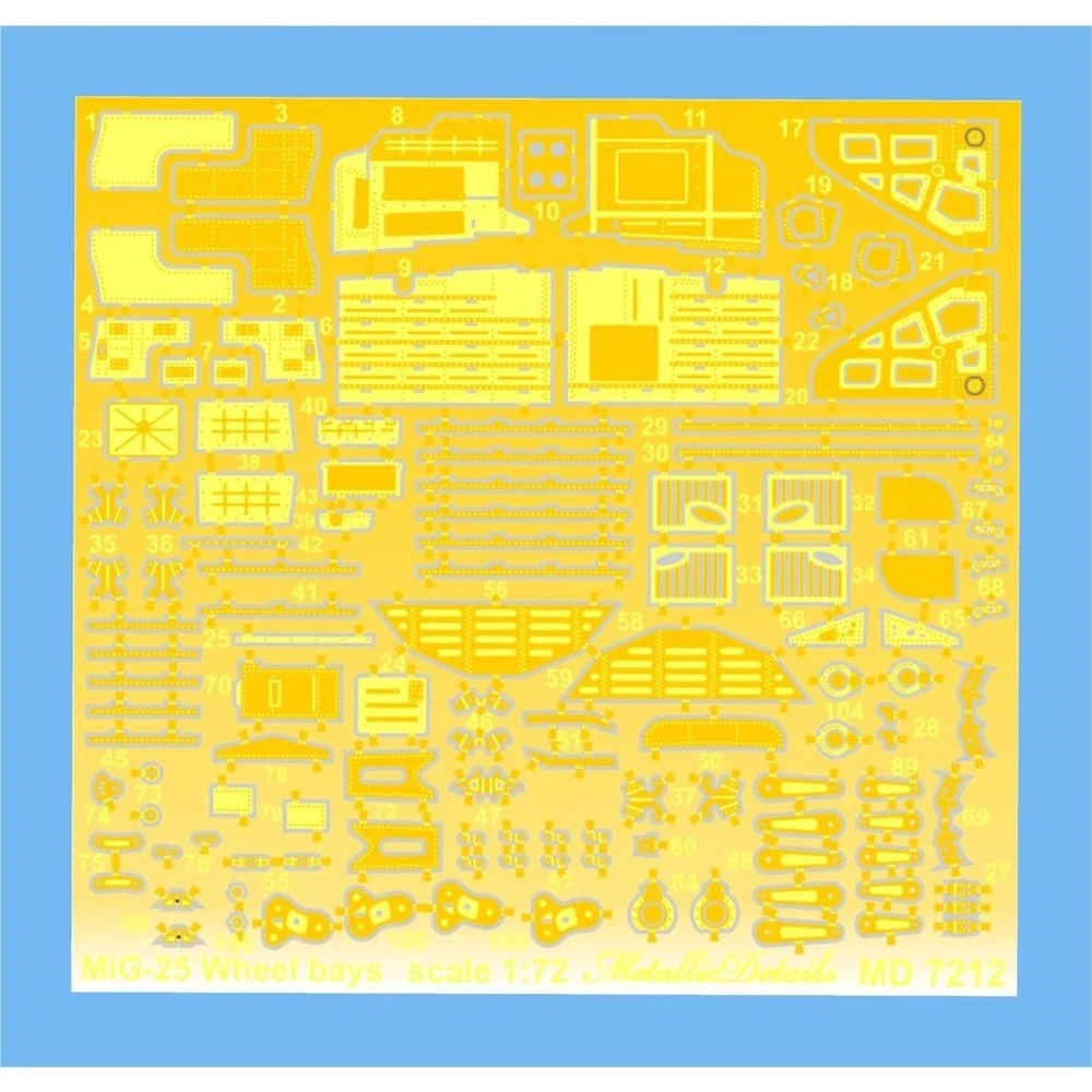 MD7212 MiG-25. Wheel bays Scale: 1:72 Manufacturer: Metallic Details (Ukraine) Country/Region of Manufacture: Ukraine Paint: Unpainted, Unassembled, Kit do not contain paints and glue. Condition: New in Box Features: Kit Set contains photoetched board (68*64 mm) for detailing of wheel bays for aircraft models MiG-25. "The Mikoyan-Gurevich MiG-25 (NATO: Foxbat) - a supersonic interceptor and reconnaissance aircraft. Produced: 1964-1984. Operators: Algeria, Armenia, Bulgaria, Belarus, India, Georgia, Kazakhstan, Libya, Russia, Turkmenistan, Ukraine." The figures are not painted!!! ----------- This is a plastic model kit. Assembly and painting is required. Paint and glue is NOT included. Item Type: Scale model kit Commodity Attribute: Assembly The model is a plastic assembly model and needs to be assembled and painted by yourself You need an extra purchase of the glue, paint and so on!