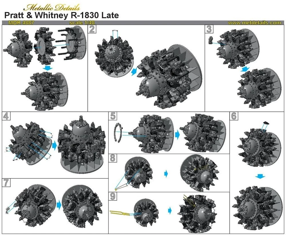 MDR4887 Pratt & Whitney R-1830 Late Scale: 1:48 Manufacturer: Metallic Details (Ukraine) Country/Region of Manufacture: Ukraine Paint: Unpainted, Unassembled, Kit do not contain paints and glue. Condition: New in Box Features: Kit Set contains resin and photoetched parts for detailing 1 engine of the aircraft. "The R-1830 Twin Wasp - an American aircraft engine produced by Pratt & Whitney, a two-row, 14-cylinder, air-cooled radial design. It displaced 1,830 cu in (30.0 L) and its bore and stroke were both 5.5 in (140 mm). Produced: 1930s - 1940s." The figures are not painted!!! ----------- This is a plastic model kit. Assembly and painting is required. Paint and glue is NOT included. Item Type: Scale model kit Commodity Attribute: Assembly The model is a plastic assembly model and needs to be assembled and painted by yourself You need an extra purchase of the glue, paint and so on!
