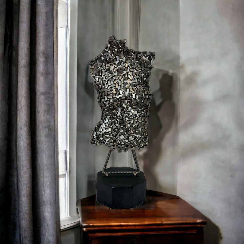 This beautiful piece of art, abstract sculpture Metal torso of a woman was formed and welded by hand with metal until obtaining the desired shape to project art with elegant lines, this life-size torso is varnished against rust. Each handmade sculpture is unique and no two sculptures are the same, it is complementary to any art collection Size Height: ( 32" ) 81cm Width: ( 13" ) 33 cm Depth: ( 10" ) 25 cm β· Thank you for your visit. βΊοΈ I hope you found what you were looking for, but if not, I have lots more items to see in my shop ππΌπ¦πΊ If you need other options, feel free to contact me π , I can make something unique for you.!) π¨π§π¨ππ¦πΊππΌ