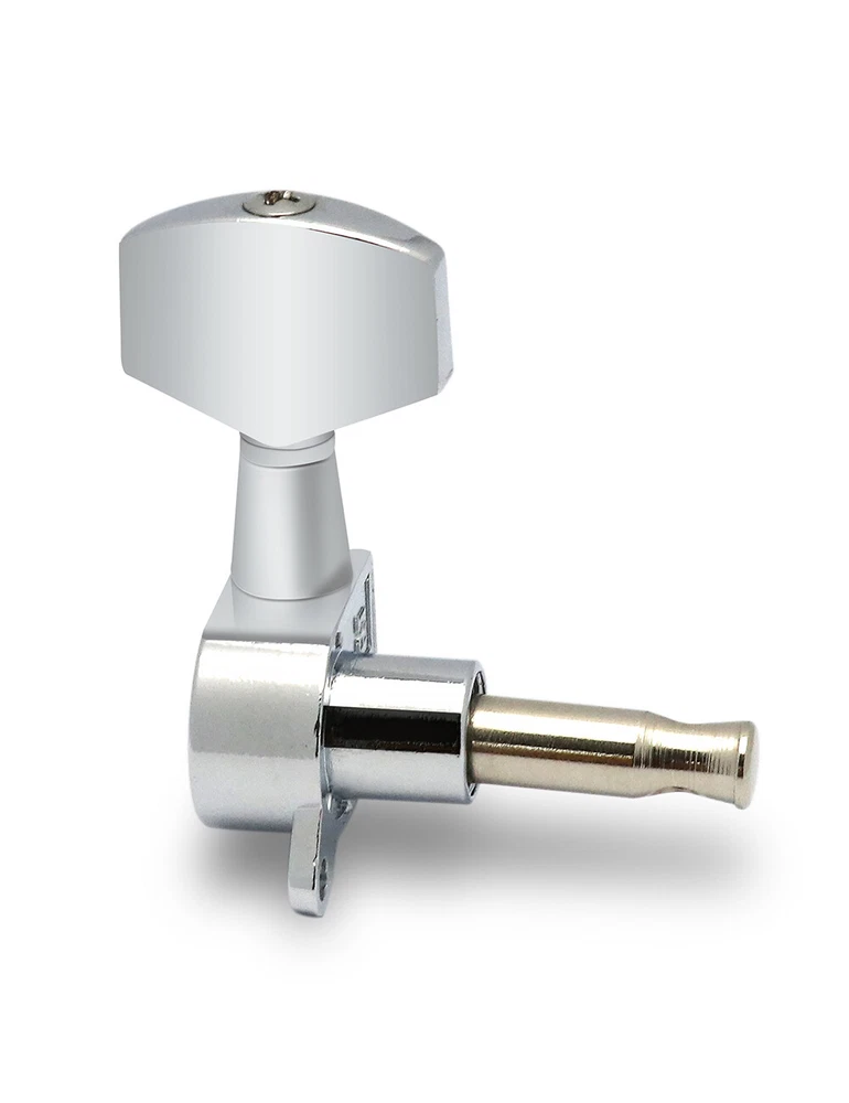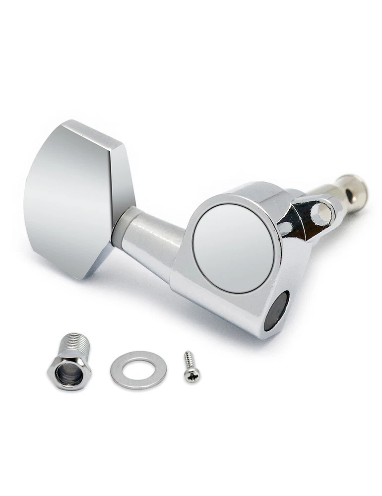 Product description Color: Chrome Material: Zinc Alloy Gear Ratio: 1:14 Tunning peg hole Diameter: Φ6mm Ferrule hole diameter: Φ10mm Electric Guitar Die-cast Tuning Machines with 45° screw hole, Fit for Strat Tele or similar style Guitar. Please check the dimension carefully before place order. Package Include 6 x Right Tuning pegs 6 x Ferrules 6 x Washers 6 x Screws Metallor Parts is a branch of Sunsmile Group, which has had over 20 years of experience in the musical instrument field. We are the leading company in China that can supply a full range of guitar parts, such as hardware, pickups and pickguards etc. Our precise production equipment and experienced staff assure you of the finest quality parts. Cooperating with guitar manufactures, our parts are widely used on famous guitars. Musicians, repairers, luthiers and factories deserve Metallor's quality parts and professional service.