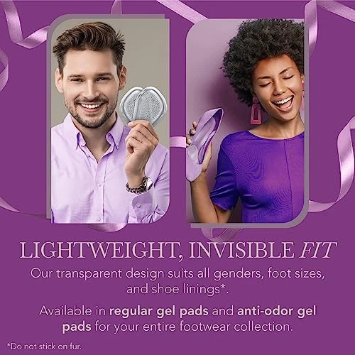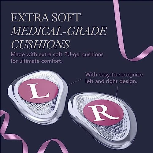 Doctor-developed design with soft, medical-grade PU gel provides unparalleled cushioning and support for the ball of the foot, ensuring all-day comfort in any shoe Invisible, tapered design (4mm - 2mm thick) seamlessly fits in your footwear without compromising style, while the strong 3M adhesive backing keeps the pads securely in place Redistributes pressure evenly across the foot, alleviating pain and discomfort caused by high heels, ill-fitting shoes, or long periods of standing or walking Prevents common foot issues such as blisters, corns, and calluses, allowing you to maintain an active lifestyle without sacrificing your foot health or comfort Reusable and easy to clean with warm soapy water, these one-size-fits-all metatarsal pads are a cost-effective and practical solution for enhancing your footwear experience