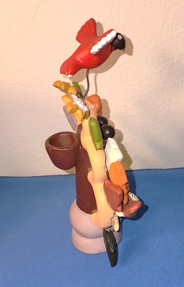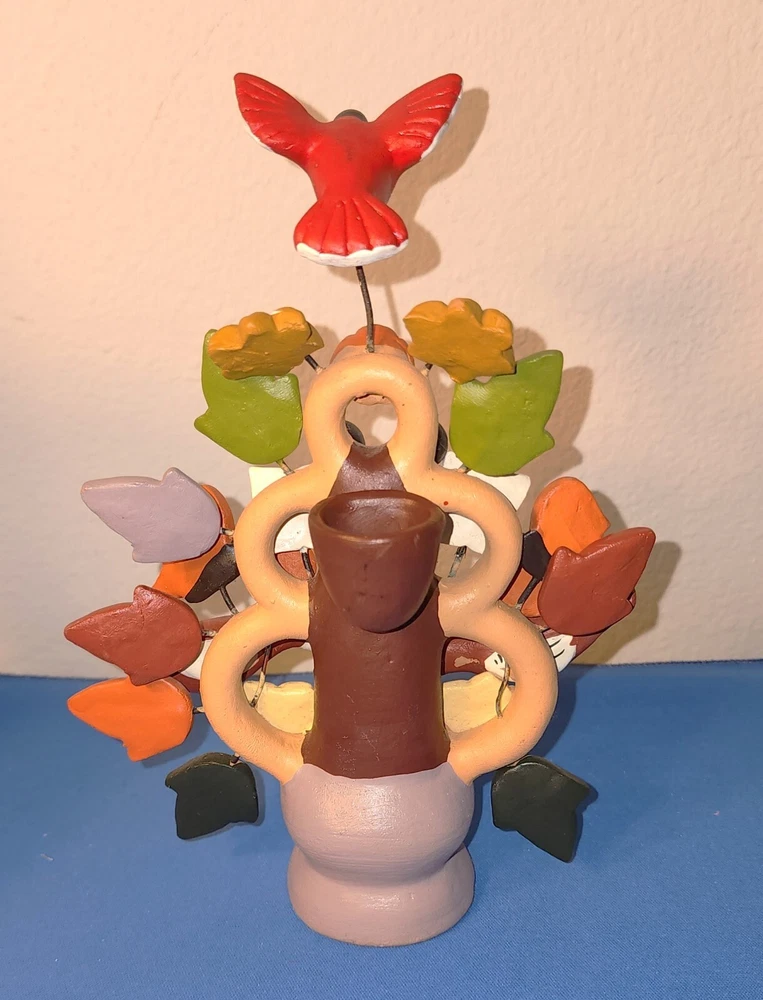 Mexican Folk Art Tree of Life Clay Sculpture, Red Birds, Mexico Very Good Condition One small chip on bottom. Can not be seen when displayed. See Photos Size - 8" Tall