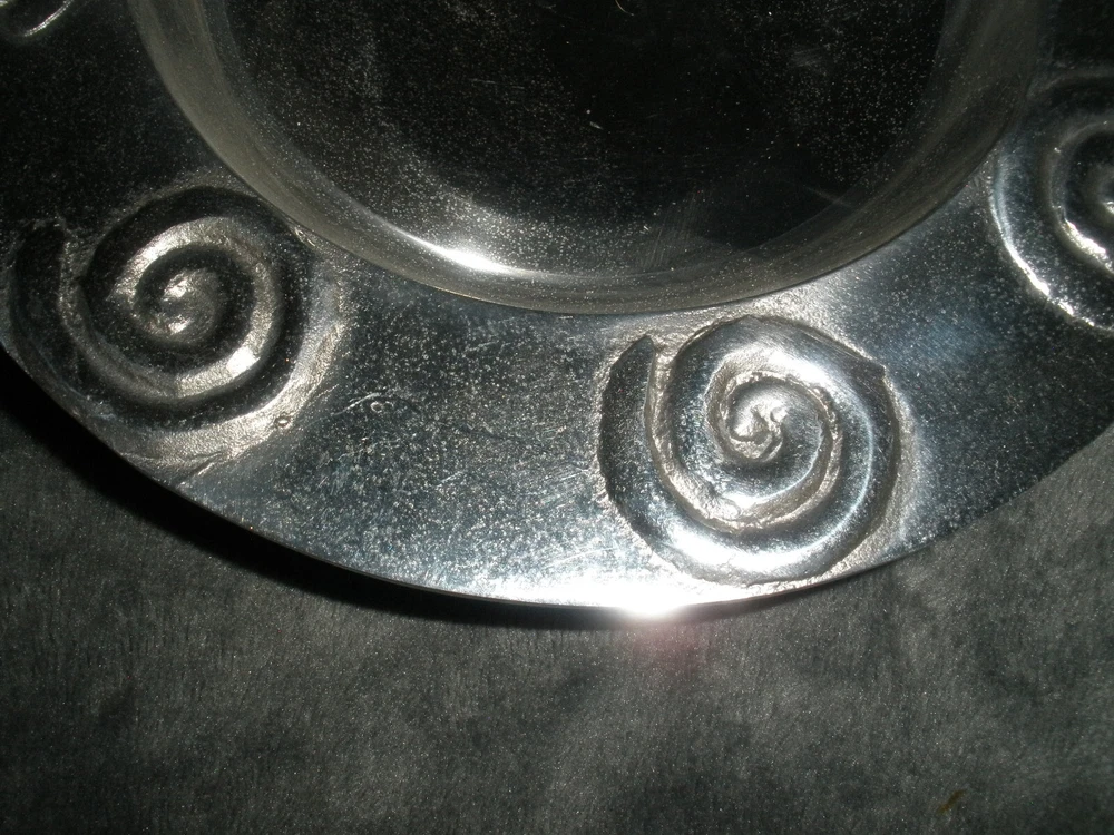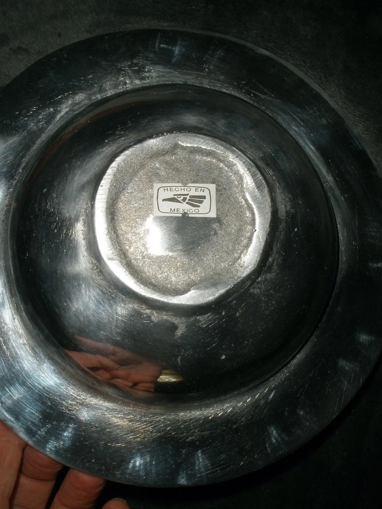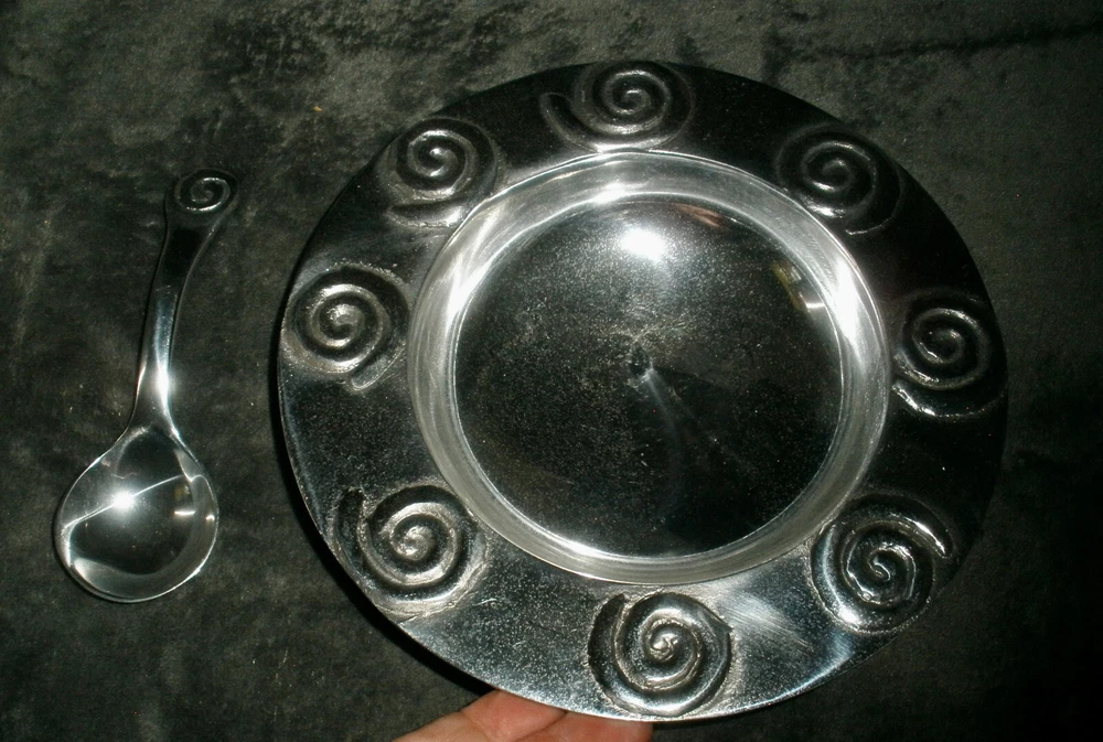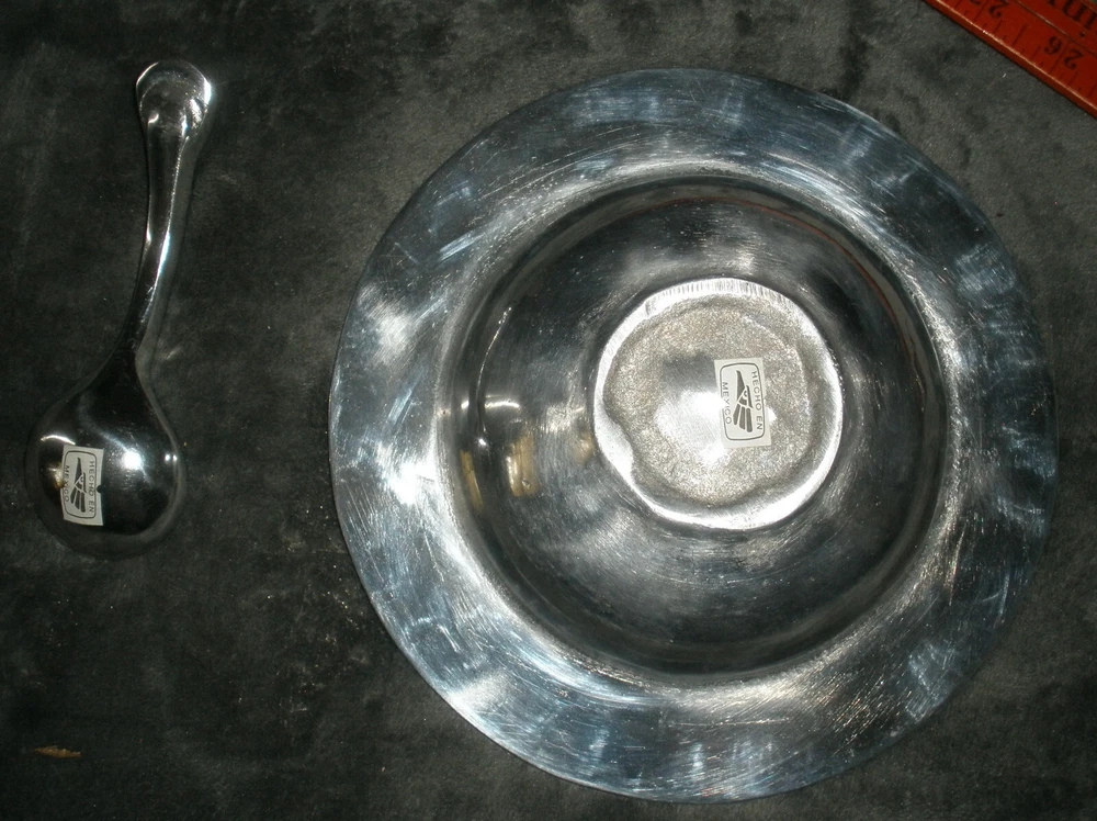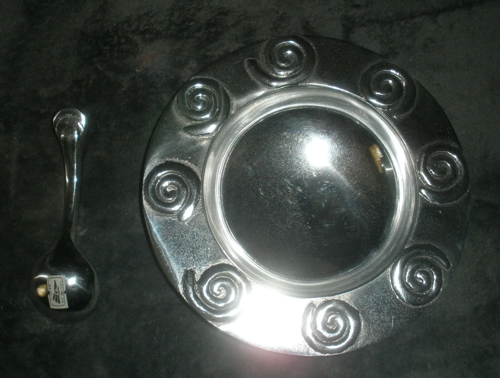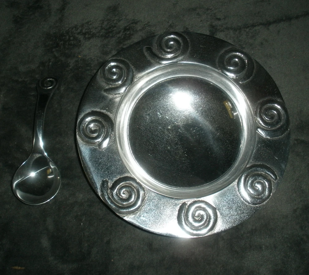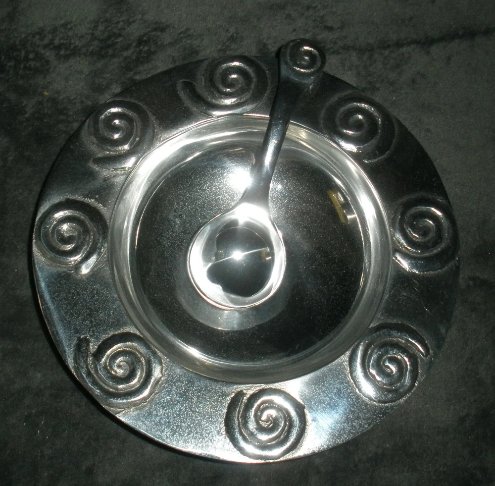 Mexican Hand-Crafted Polished Cast Aluminum Circles Serving Bowl & Spoon
