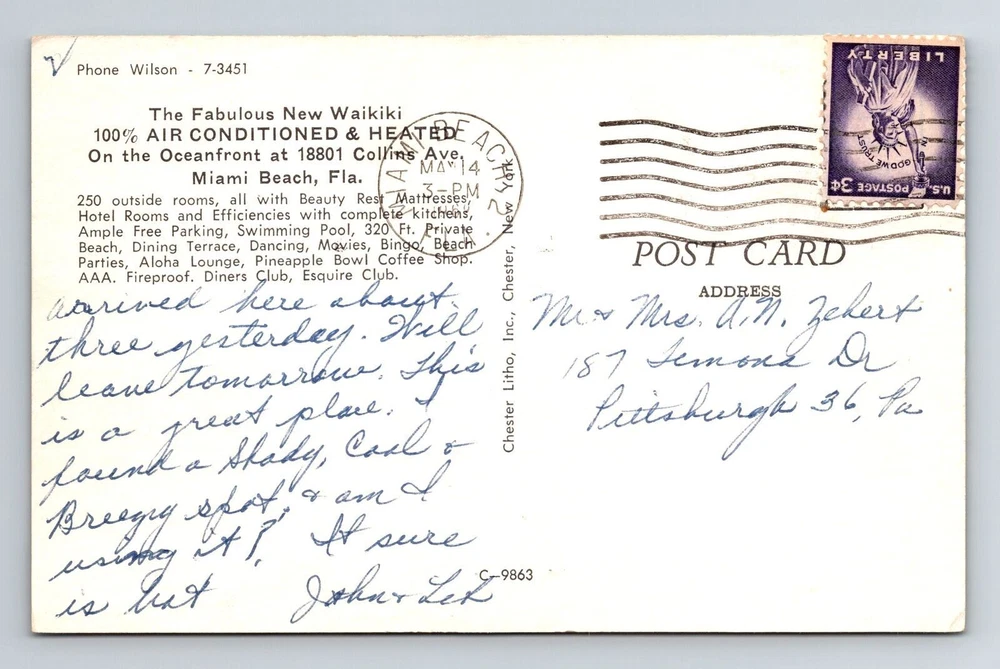 Miami Beach FL-Florida, Scenic View Waikiki Hotel, Vintage Postcard