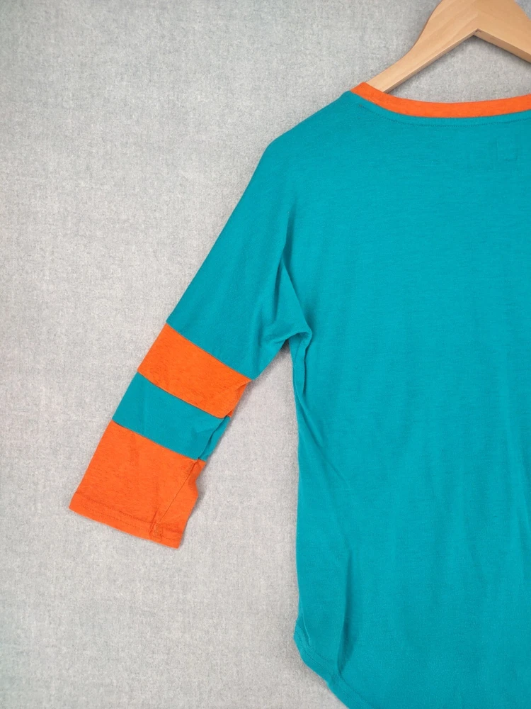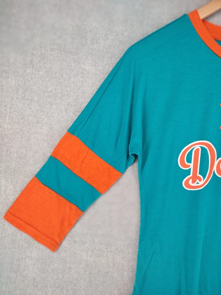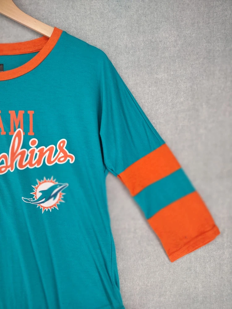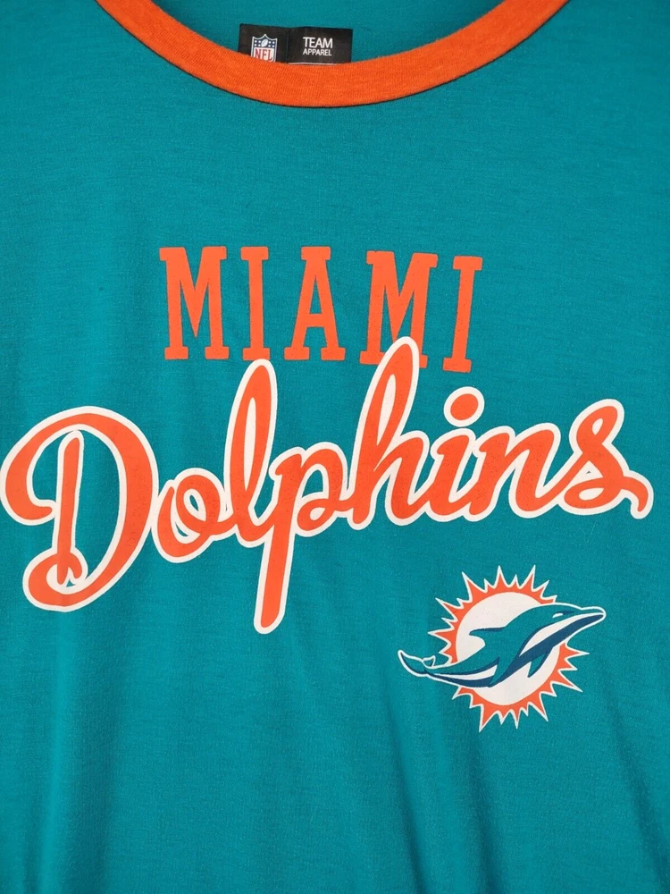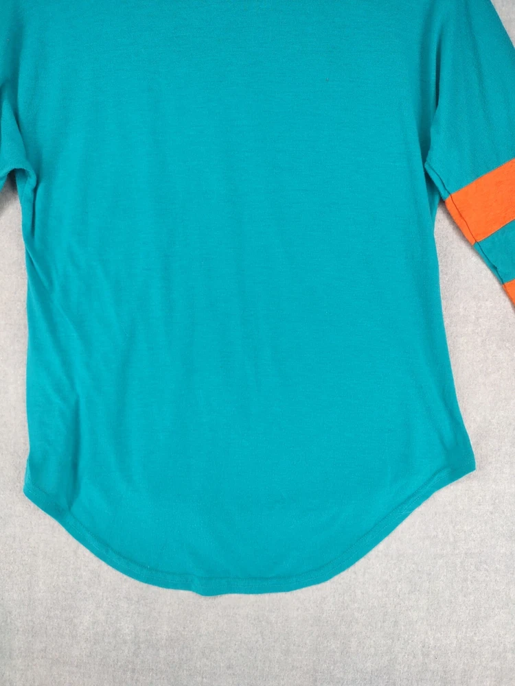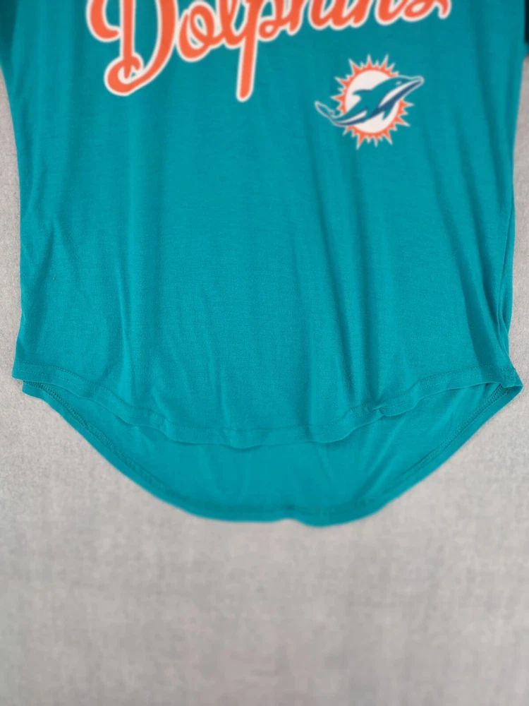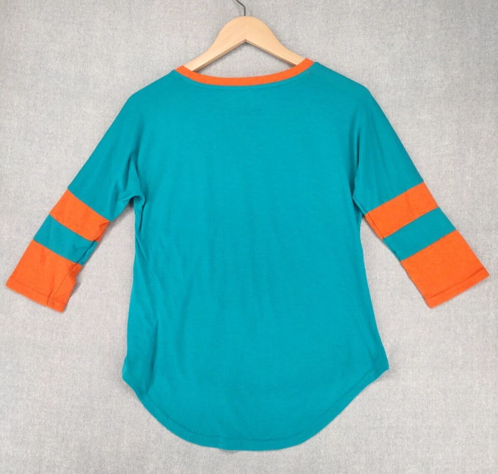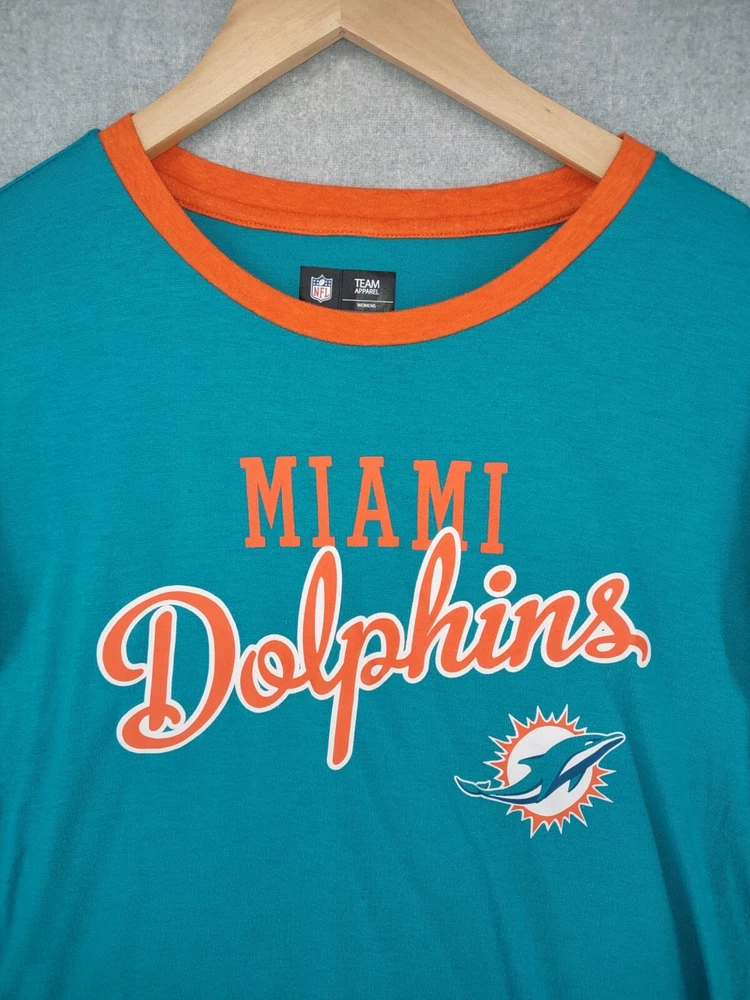Welcome to Aspen Crossing! This item is Miami Dolphins NFL Team Apparel Womens Small 3/4 Crew Logo Tshirt 25.5" LENGTH: Measured from the top of the shoulder to the hem. 19" CHEST WIDTH: Underarm to underarm, measured flat from left to right. 3/4 Sleeve It is always best to compare the measurements above with a top that fits you comfortably. CONDITION - Good pre-owned condition. All items are cleaned per EBAY standards. Not spot treated. See the photo gallery to view this items measurements and condition. SHIPPED - USPS First Class Mail unless item weight requires priority mail. RETURNS accepted, must be returned within 30 days in original condition to receive a full refund. SHIPPING AND HANDLING We ship all packages within five business days Monday through Friday except Holidays. Consolidated shipping is available for multiple purchases. Thank you for helping our planet and buying previously owned and loved items. I am grateful for your business. Enjoy! Check out our eBay store and follow us. There are new listings daily. CUSTOM SKU: 28-2520 Disclaimer: While we make every effort to capture the most accurate depiction of every item when photographing, colors may vary from screen display to in person therefore we cannot guarantee "exact shade" on any item. Message us if you have questions.