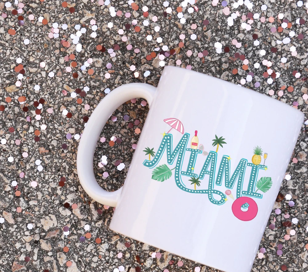 Miami Florida Palm Tree Ocean Retro Illustrated Ceramic Plastic Travel Mug Drink Product Details.. This high quality 11oz. ceramic white mug has a premium hard coat that provides crisp and vibrant color reproduction sure to last for years. Perfect for all hot & cold beverages. The highest quality printing possible is used. It will never fade no matter how many times you wash it. Material: 100% Ceramic. Print both sides. Dishwasher and Microwave Safe. High Gloss + Premium White Finish. Printed in the U.S.A. Personalized & Custom. We support personalized and custom mug to add custom, when placing an order, you can add notes to the "order note" in shipping address section. Also you can contact us directly via message. Shipping Info. Ready to ship in 1 to 2 business days, All products are made-to-order and proudly printed in the United States. Shipped by USPS and DHL, You will receive your order in 5-7 days. Replace & Refund. All products are defective during shipping broken, chipped will be replaced free of charge. You are not satisfied with the product, we will refund 100% money to you. If any other issues arise, please do not hesitate to message, we would be more than happy to assist you.