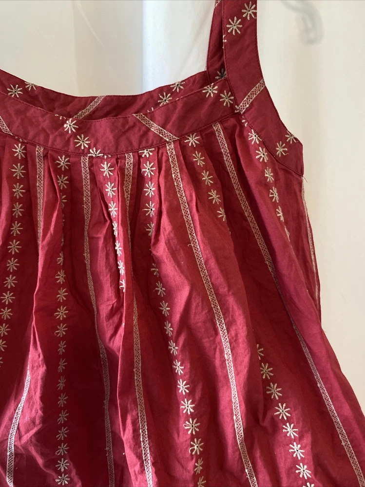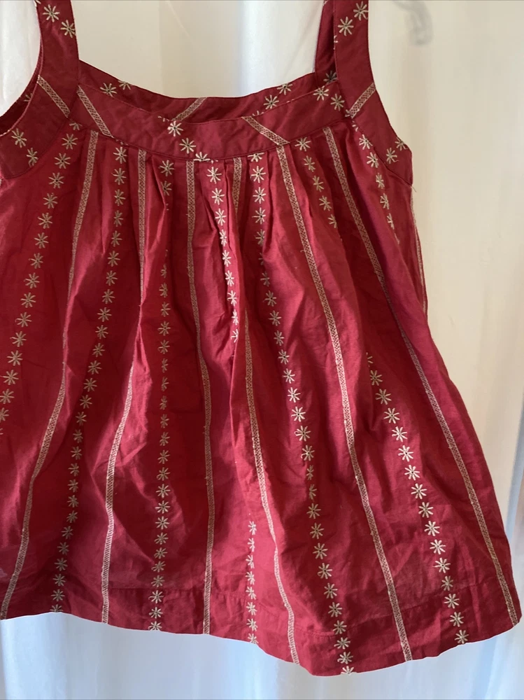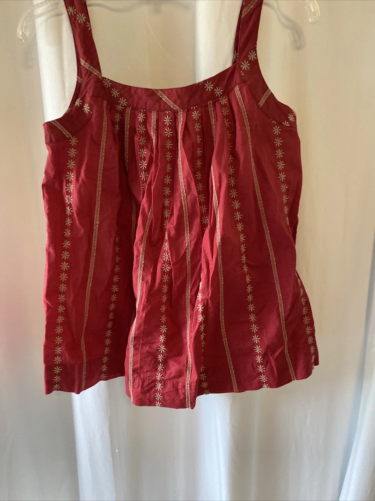 This is a petite sleeveless halter top with a red floral pattern from Michael Kors. It is made of lightweight cotton material and features pleats. The top is designed for petites and has a basic style with colorful accents. Top is in great condition. No rips tears or stains. Ready for use. Measurements taken with garment laying flat Chest 17 Length 19.5 Thanks for looking and have a great day!!