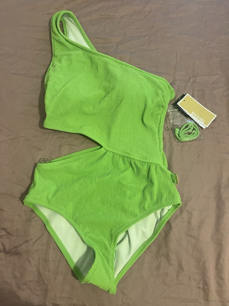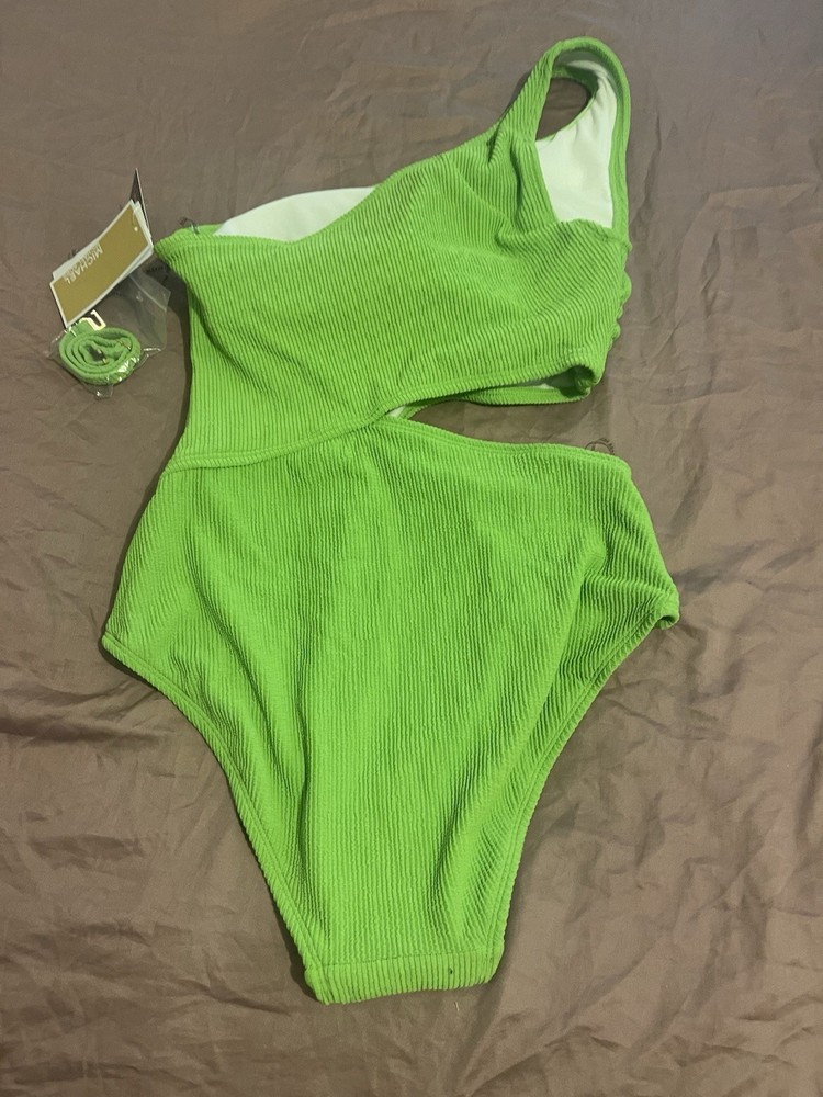 Michael Kors Size 8 One-Shoulder Side-Cutout Swimsuit Green One Piece New