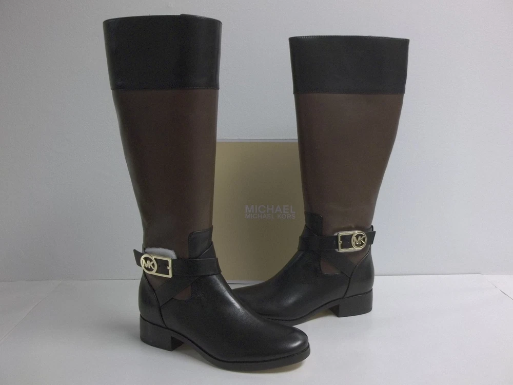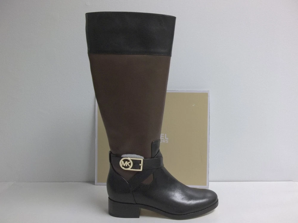 Michael Kors Size 5.5 M BRYCE TALL Black Mocha Leather Boots New Womens Shoes -Style: 40F5BYMB8L -Color: Blk/Mocha -Leather upper -Leather and textile lining -Leather insole -Man made outsole -Heel height is approximately 1.25 inches -Shaft height is approximately 14.75 inches -Top to bottom is approximately 16 inches -Boot opening measures approximately 15 inches and flexible -Emblem and zipper are gold color