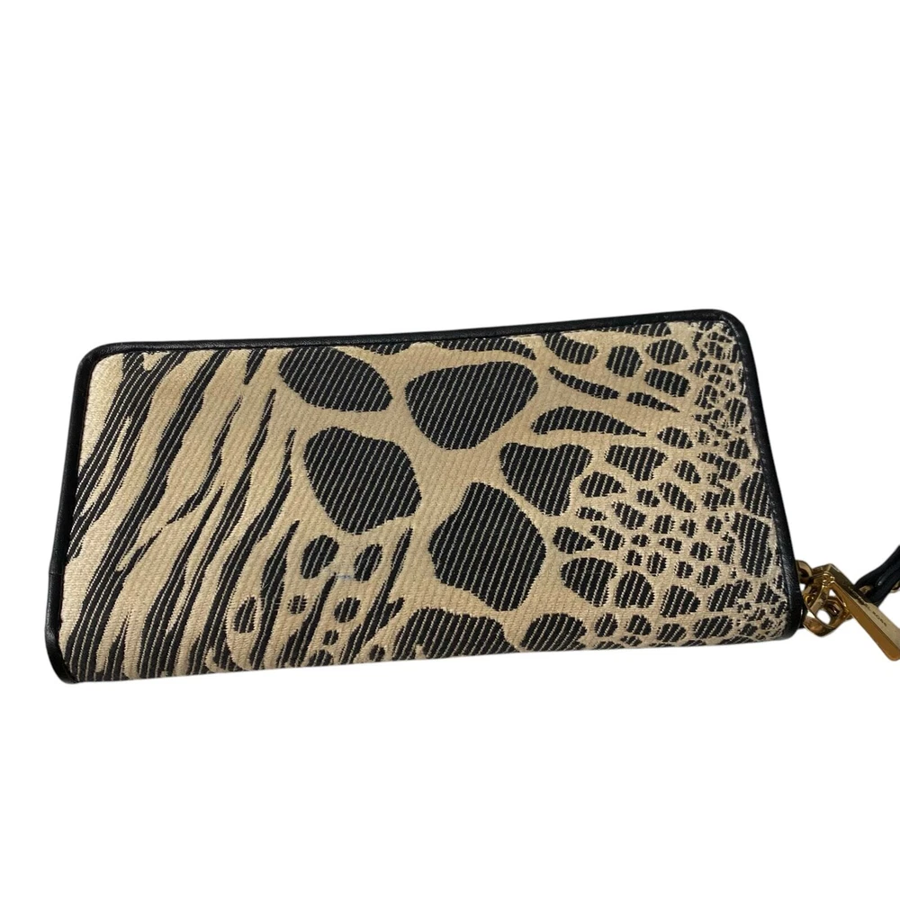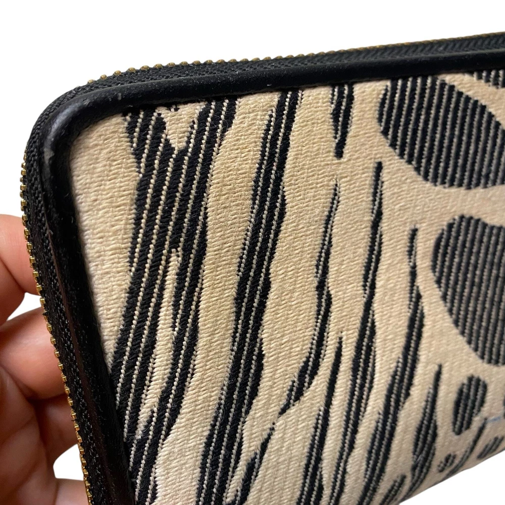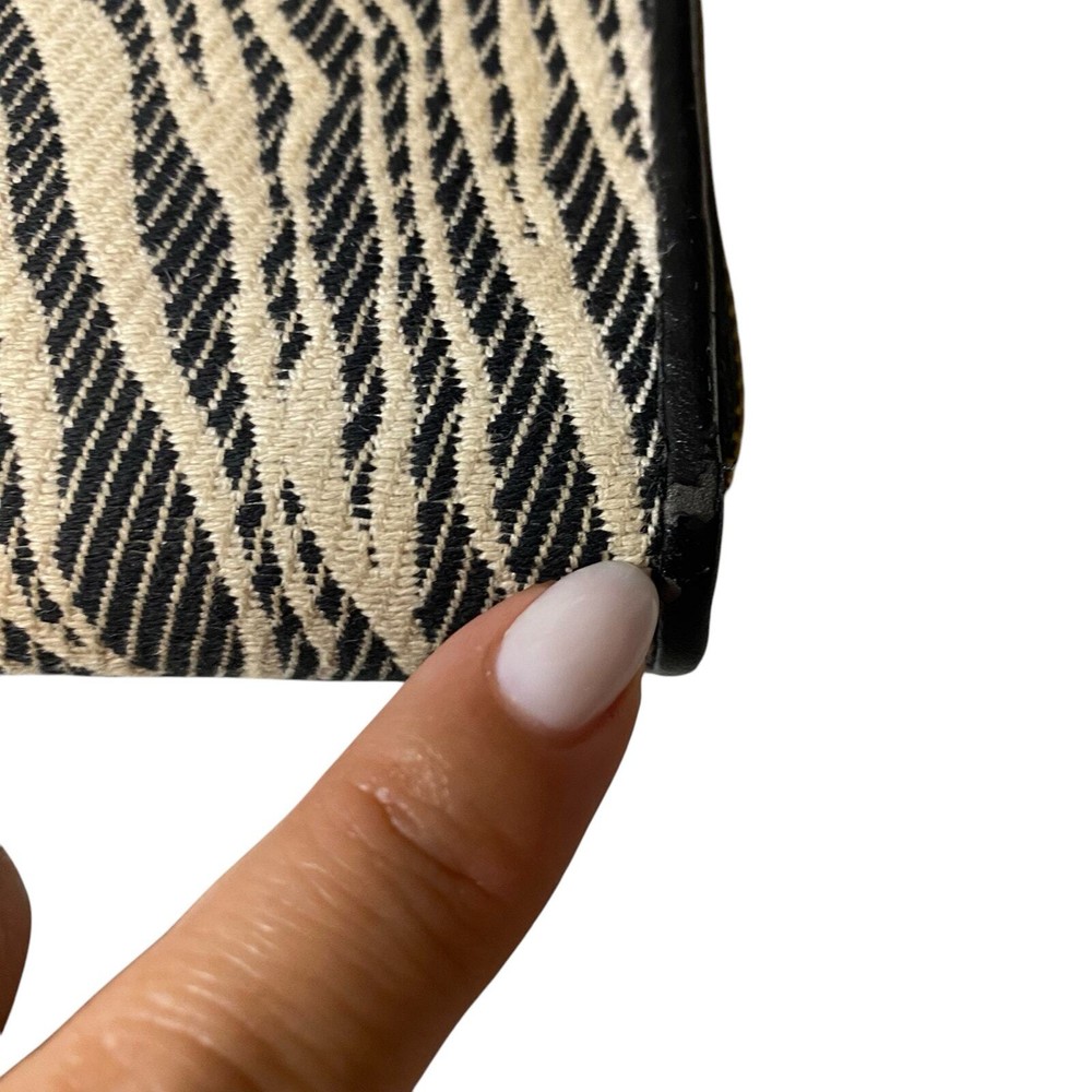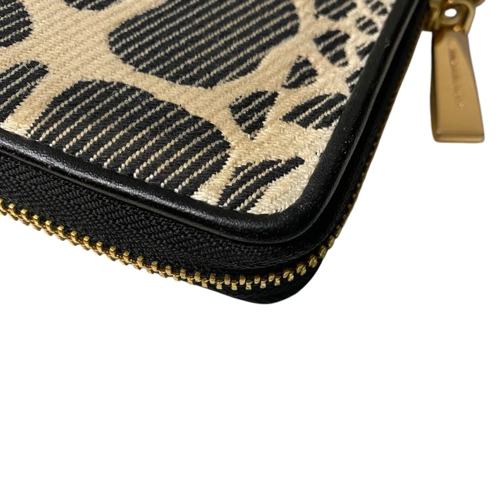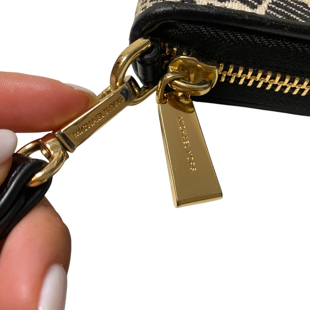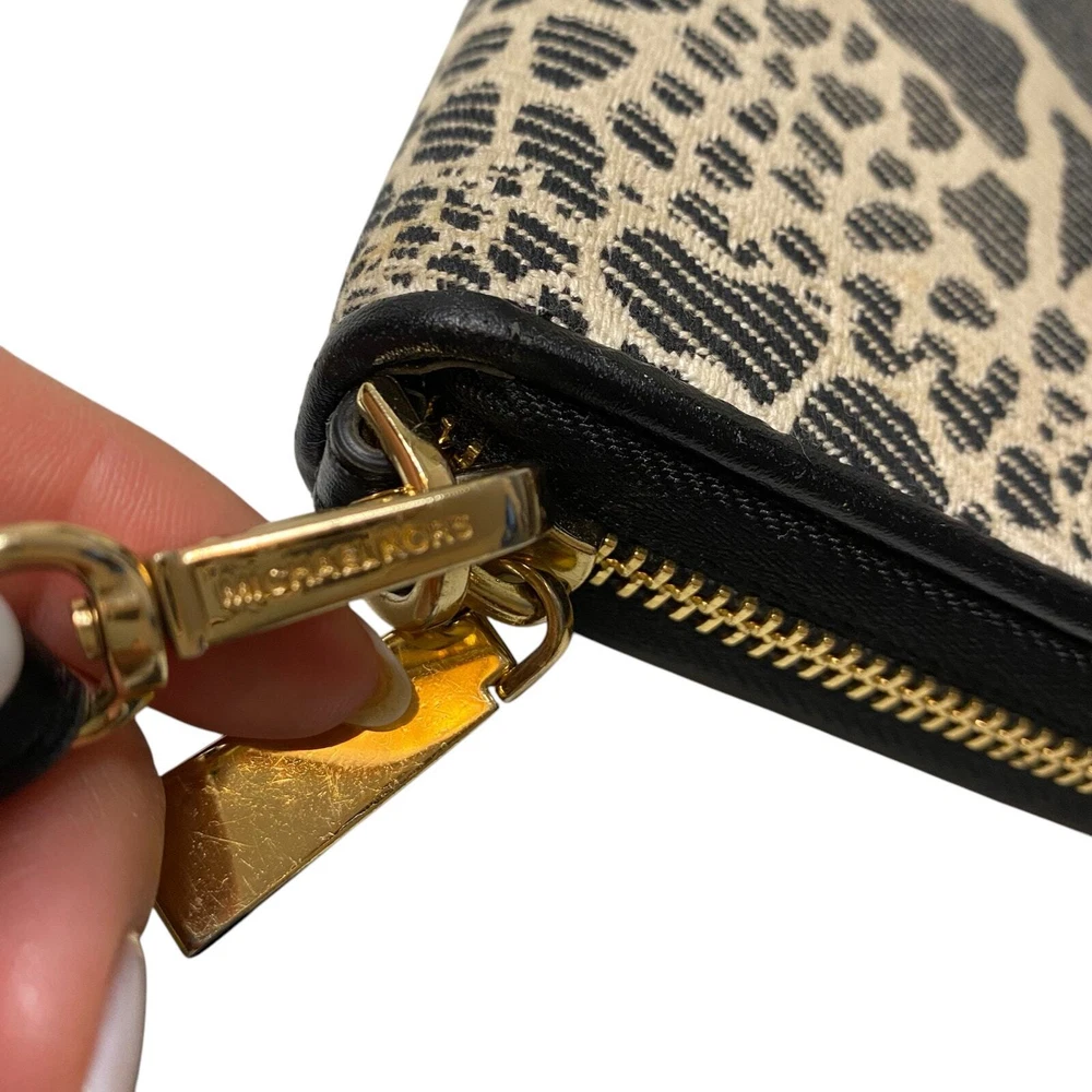 Michael Kors Women's Cotton Canvas Jet Set Travel Zip Around Continental Wallet Large sized wallet made from high-quality cotton canvas with smooth nappa trim, ensuring durability and a luxurious feel. Securely stores your essentials with a convenient zip-around closure, keeping your belongings safe and easily accessible. Features a polyester lining and multiple pockets including 17 credit card pockets, 5 slip pockets, and 1 zip pocket, offering ample storage space for cards, cash, coins, and more. Golden hardware for a luxe look. Pre-loved with some wear on corners and interior pockets as shown in photos. Color in pics may vary due to lighting and/or monitor settings APPROX MEASUREMENTS: 8-1/4"W x 4"H x 1"D, with a 7"L strap for easy carrying. SHOP POLICIES * All items ship within 1-3 business days (I always try to ship by next business day) * This item is used pre-loved * Any defects (if any) are noted and shown in the photos * All sales are final * Please review the description/pictures and ask questions before purchasing