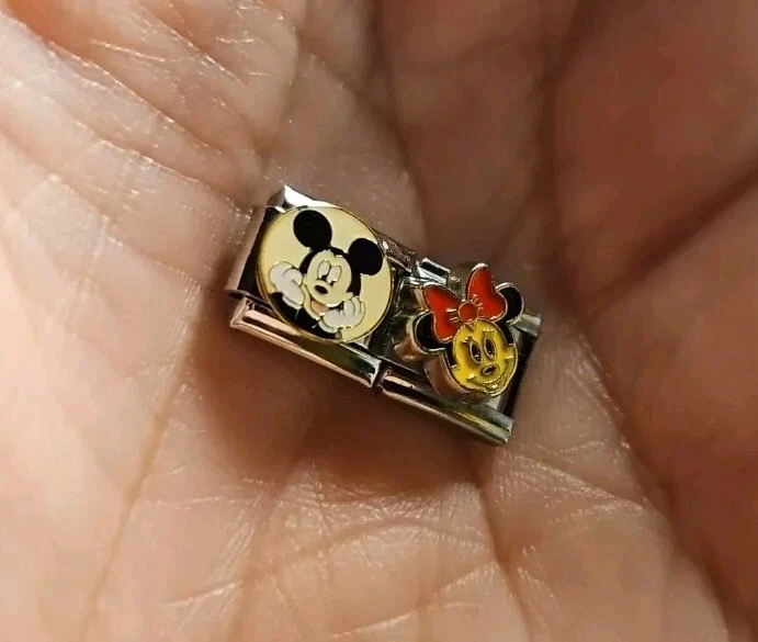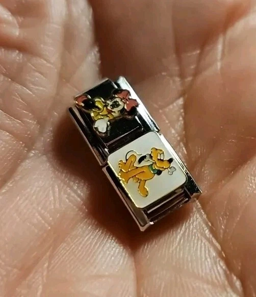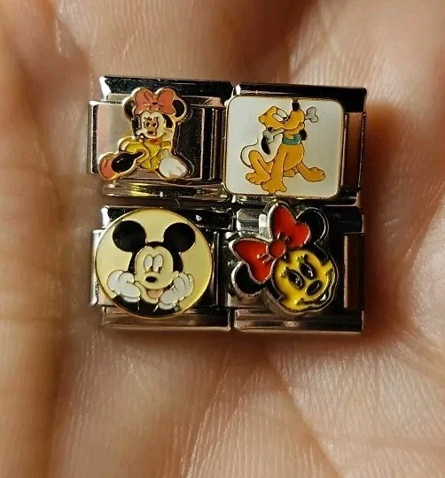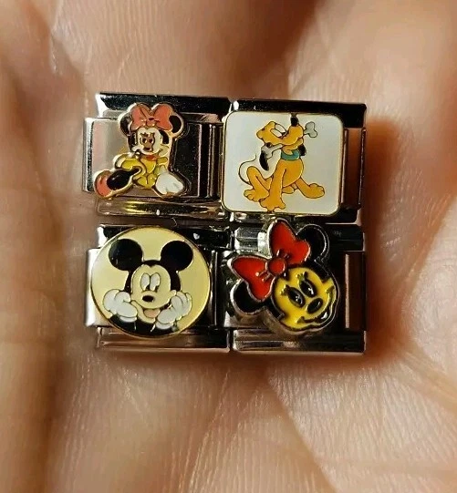 Mickey Minnie Pluto Italian Charm Enamel Links Set Of Four 9MM Stainless Steel