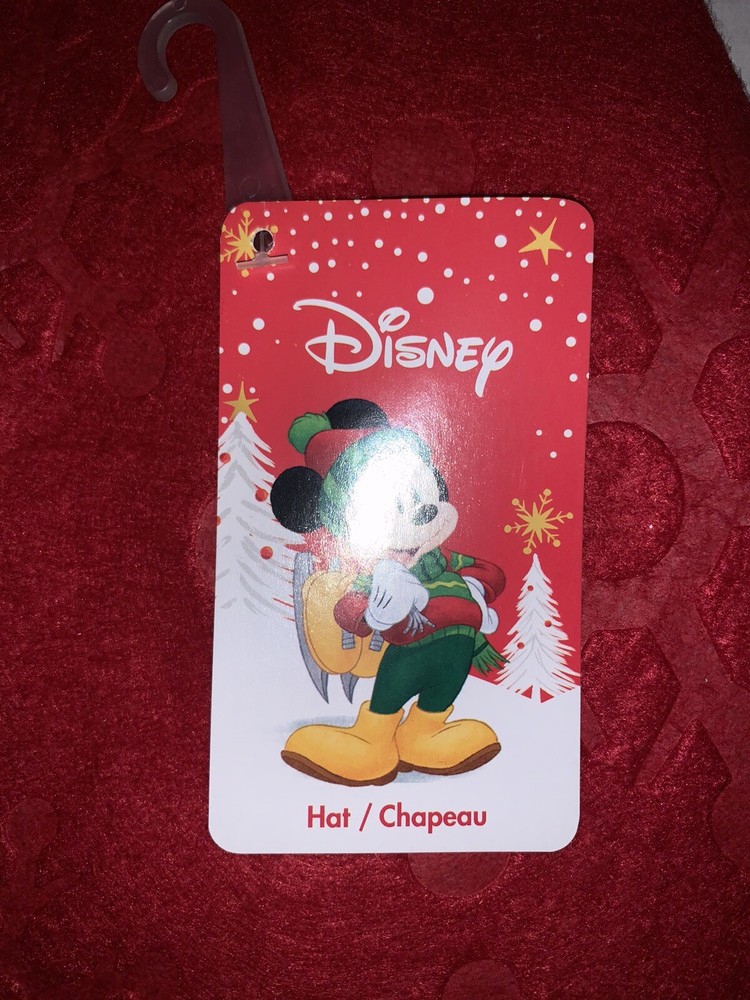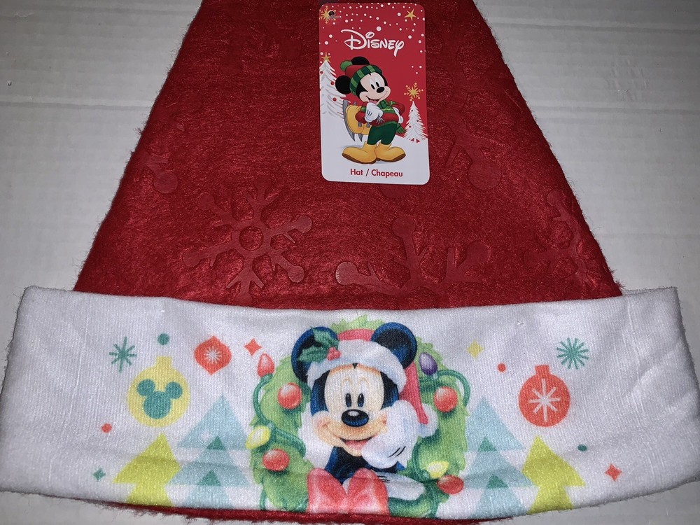 Mickey Mouse Red Santa Hat with Pom Pom Ball Snowflake Imprint 15x12”
