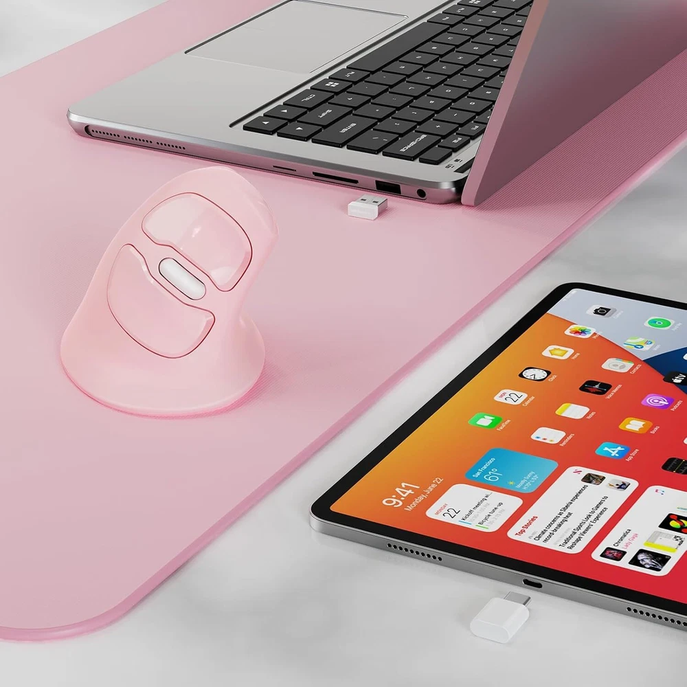 MicroPack Ergonomic Mouse, Vertical Wireless Mouse Pink & Type-C Receiver Product Details Package Dimensions: 4.57 x 3.82 x 3.43 inches Item Weight: 8.4 ounces Manufacturer: MicroPack Country of Origin: China Brand: MICROPACK Digitally Yours Color: Pink & Type-C Receiver Connectivity Technology: Wireless, USB Special Feature: Wireless, Portable, Lightweight, Ergonomic Design, Soundless Movement Detection Technology: Optical 【Unique Vertical & Ergonomic 60º Natural Handshake Posture】Compared to traditional horizontal mice, MicroPack new upgrade mouse with silent clicks is meticulously crafted with vertical shape, adopt an ergonomic design that can naturally adapt to the natural posture of the human palm. It reduces strain and fatigue in the wrist, forearm and arm, helping users maintain a comfortable and healthy working state. 【High Precise Tacking & 3 Adjustable DPI】This comfortable mouse with natural grip achieves high-precision cursor control, providing a smoother mouse operation experience. Multiple adjustable sensitivity settings up to 1600 DPI can adjust the speed and accuracy of the mouse, easily switch DPI with a simple press of the switch, making it ideal for gaming, design work, and other demanding tasks. 【Auto-Sleep Power Saving Mode For Long Battery Life】Thanks to the automatic sleep function, our durable mice with smooth scrolling can automatically enter sleep mode after 60s of staying idle to preserve battery. Only a AA battery needed, it can work up to 8 months. (Battery not included); This reliable WIRELESS MOUSE allow you to get rid of messy cords, providing a more flexible working experience. 【Silent Buttons & Wide Compatibility】MicroPack long lasting grip comfort mouse with USB A & Type-C Receiver is compatible with multiple operating systems, including Windows, Mac OS, Linux, etc. Noise-reducing buttons make it suitable for office, home, gaming, shared workspaces or quiet environments. 【Forward And Backword Button】The dedicated forward and backward buttons offer a convenient and efficient means of navigation. Our user friendly vertical mouse is made of high-quality materials, with excellent durability and reliability, and can work stably for a long time. Please note that the product cannot be programmed.