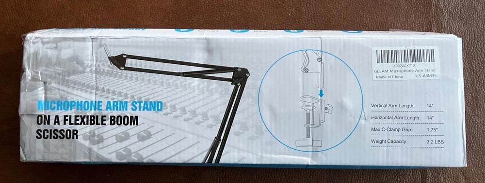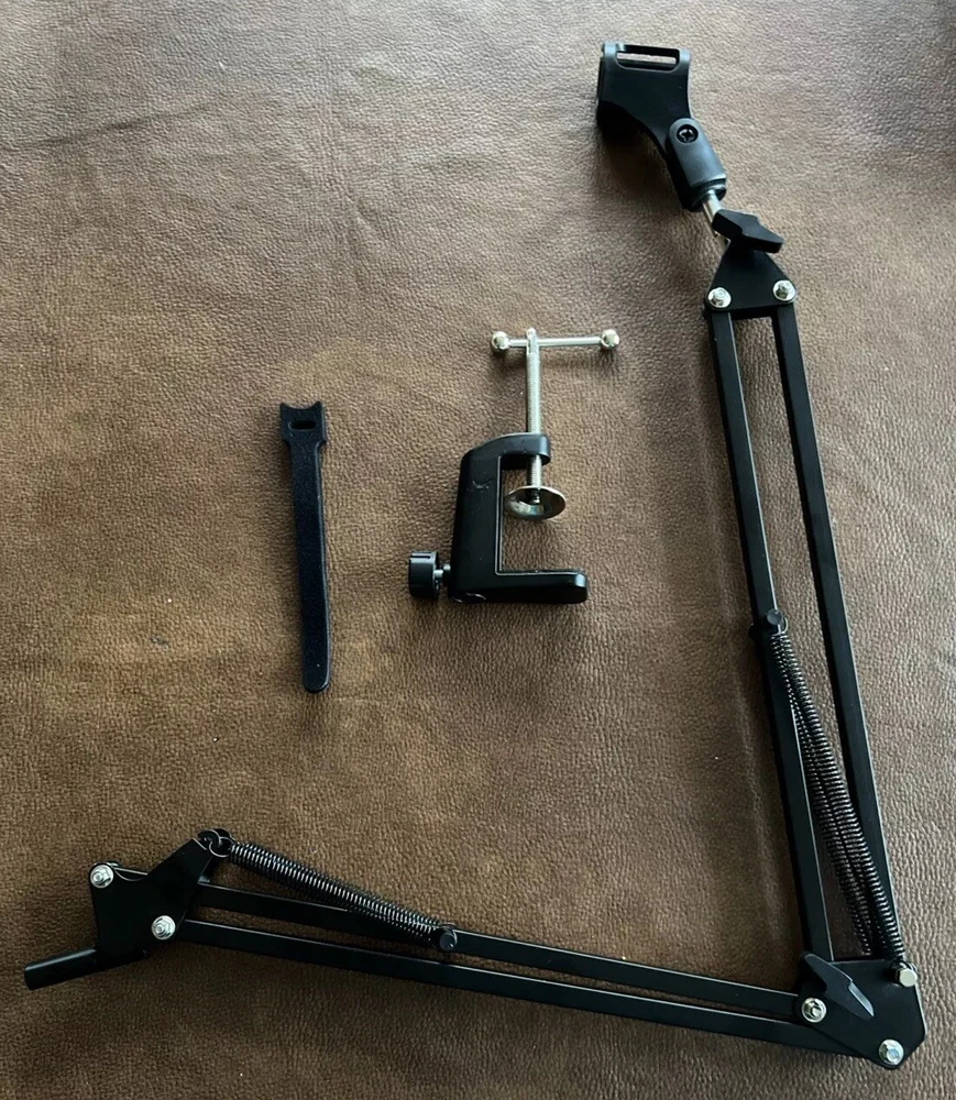 Color: Black Suitable For: Microphone Material: Metal Brand: Gleam Shape: Boom Arm Features: Foldable, Height-Adjustable, Portable Seller Notes: “Good condition”
