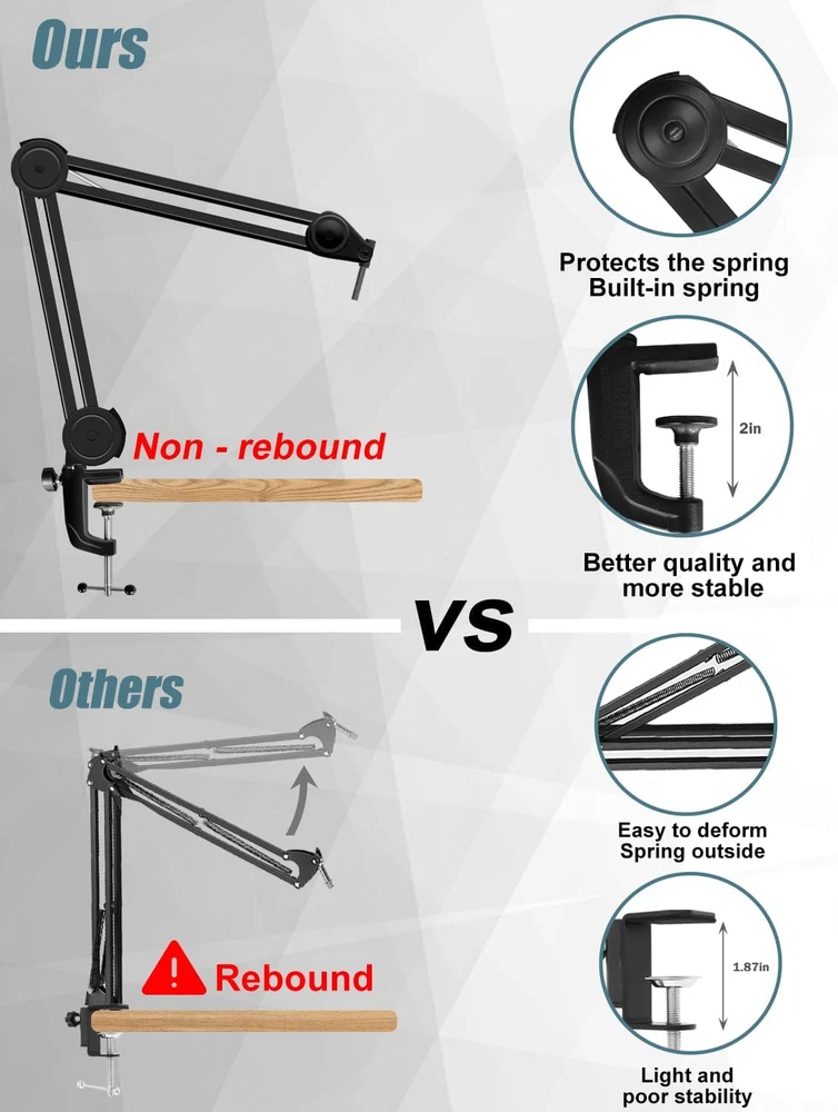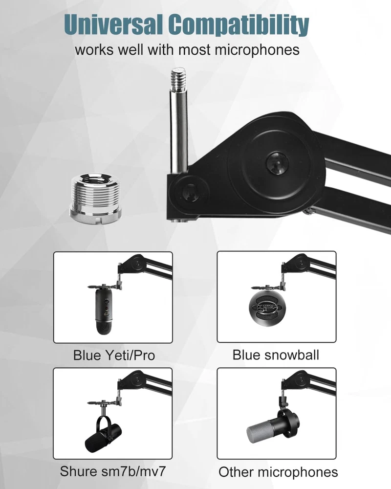 Store New Arrivals Add to Favorite View Feedback Contact Microphone Boom Arm Stand for Blue Yeti with Shock Mount Foam Cover, Heavy Duty Boom Scissor Arm Stand for Blue Yeti, Broadcasting and Recording Description Style Desktop Stands Color Blue Material Aluminum Material Type Aluminum Base Type Leg Superior Design: Our microphone stand features an upgraded design for enhanced stability and better overall quality. Its built-in spring mechanism ensures both safety and aesthetics, reducing noise and preventing injury from external springs or rebound arms. With its superior design, our blue yeti mic stand provides enhanced stability and safety during your recording sessions. Heavy Duty Construction: Made of sturdy metal, this blue yeti boom arm securely holds your Blue Yeti and Snowball microphones, effectively reducing noise and vibration. The 360-degree rotation and horizontal reach of 27 inches allow for maximum flexibility during recording sessions. With its heavy-duty construction, our boom arm ensures a durable and reliable microphone setup for professional audio quality. Excellent Shock Mount: Our boom arm with shock mount is specifically designed for Blue Yeti/Pro, Blue Yeti X, Blue Snowball and other microphones. Crafted from materials, this microphone stand effectively reduces vibrations and unwanted noise, allowing for clear and professional sound recordings. The cotton pad between the shock mount and the microphone bottom prevents scratches, providing added protection to your valuable equipment. Efficient Noise Reduction and Space Organization: Our microphone pop filter provides excellent protection against plosive sounds and unwanted noise, delivering professional audio recordings every time. Designed to perfectly fit Blue Yeti microphones, it ensures optimal sound quality for your recordings. Additionally, the mic stand desk comes with cable ties for effective cable management, allowing you to keep your workspace neat and tidy. Upgraded Table Clamp: Our desk mount microphone boom arm features an upgraded table clamp with a sponge pad that effectively prevents slippage and protects the desk from damage. This ensures a stable and secure placement on desks up to 2 inches thick. With its enhanced table clamp, our microphone desk stand provides a reliable and convenient solution for your recording needs. Product Description Noise-Free Design Due to its built-in spring, it effectively reduces the noise when you recording. The spring inside is hard to break and won't rebound. The whole boom arm is made of high quality materials, so it has a stable construction and won't make noise. Professional Shock Mount The shock mount can isolate your mic from noises and vibration. There is a cotton pad between the shock mount and the bottom of your microphone, which can prevent your microphone from being scratched. Table Clamp Base The table clamp base has a side screw which can make the microphone stand been firmed tightly on the desk. The sponge on the base can effectively protect your desktop from scratches. ABOUT US We offer the best prices around on high quality products. Our E-store includes media such as books, movies, music and games while offering electronics, toys, sporting apparel, clothing, tools, general home, garden items and more. SHIPPING We are always working hard to ensure your package arrives as soon as possible. Please understand that some factors like weather, high postal traffic, and the performance of shipping companies are outside of our control. We offer free shipping to the lower 48 states and ship within 2 business days of payment, usually sooner. We do not accept P.O. Boxes. Please provide a physical address. For shipping outside of the continental USA, we only use eBay's Global Shipping Program.The item is shipped to KY and then sent to the rest of the world. International customers are responsible for all duties and taxes. Continue to check out in order to calculate costs for shipping the item to your country. Messages regarding eBay's Global Shipping Program MUST be directed at eBay EXCLUSIVELY. RETURNS We offer a 30-Day Return Policy on items which you are not completely satisfied with. You have the option for a full-refund or an exchange of the item. No returns are available on items shipped outside of the USA. PAYMENT We accept PayPal. CONTACT US This page content is yet to come Please ad us to your favorite seller and visit again later Thank You CUSTOMER SATISFACTION We try our very best to make sure every customer is completely satisfied. If there's a problem, message us! We're happy to help. WE ACCEPT Copyright © 2021 AutoDS. | All Rights Reserved