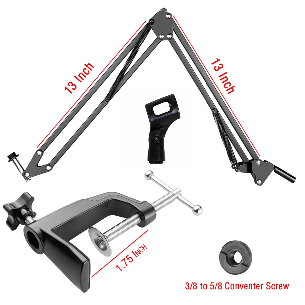 Line wrap eBay Boytone BT-30ST Adjustable Microphone Arm Suspension Boom Scissor Arm Stand, with 3/8" to 5/8" Screw Adapter, for Radio Broadcasting Studio, Voice-Over Sound Studio, Stages, and TV Stations Description Warranty: NEW - 1 Year warranty FEATURES · The adjustable microphone arm can be fold up and easy for you to carry around. This feature enables to adjust the suitable angle and height to show your perfect voice. Before adjusting the angle of the microphone arm stand make sure to loosen the knob first. Avoid rotating it by force as it can damage the screw threads. · Upgraded Desk Mount: In comparison to the old versions, this zinc alloy desk mount is built with anti-scratch pad and wider mouth up to 2.44" to fit most desktop. · The 5/8"-27 male to 3/8"-16 female screw adapter which included in the package fits for blue snowball. The Diameter of Microphone · Heavy Duty Steel Structure: Super-strong spring with extra positioning screw, folding type, convenient to carry. The adjustable arms allow you to carry it with you easily and adjust the suitable angle and height to show your perfect voice. · Compact microphone stands designed for heavy duty carry. Suitable for any stores, families, stages, studios, broadcasting and TV stations, etc. Completely flexible, firmly attach the microphone anywhere. Please Note: Kindly refer the Instructional Video before use which is very essential. Shipping Alaska and Hawaii $35.00. No International Shipping (Except Canada). Canada $25.00 USPS or UPS, BUYER responsible for all custom fees. No P.O. Box Delivery. No APO/FPO Delivery. PayPal Confirmed Addresses Only. Items Will be Shipped by UPS Ground or USPS on the Same or Next Business day of receiving full payment. UPS/USPS Tracking Number will be provided. Payment PayPal and credit card is Accepted. Immediate Payment is required after the Winning Bid. Item will be shipped immediately on the same or next business day of receiving full payment. California Resident apply sales Taxes. Terms We reserve the right to cancel any bids. Returns accepted only within 30 days of receipt provided item is intact and in original packaging with no signs of impact, sand or water. There will be no refund for tampered items (sticker removed, etc..). Buyer is responsible for shipping charges to us after 30 days. We will send the item back at no charge. All items need to be paid within 5 days of auction closing. Defective items need to go to manufacturer for repair. 30 day return policy applies to all items under manufacturer warranty. All unit are under manufacturer's warranty. Returns All units advertised comes with manufacturer warranty should be referred to the manufacturer in case of repair. There are ABSOLUTELY no exchanges, returns or refunds after 30 days of receipt. Buyer is responsible or shipping charges. We will send the unit back at our cost. Items returned within 30 days of receipt will be exchanged provided there are no impact, water, or mishandling. Please Read Fees CANADIAN BUYERS : Packages will be sent by USPS Standard YOU WILL BE CHARGED CUSTOMS FEES. SELLER IS NOT RESPONSIBLE FOR ANY CUSTOMS CHARGE & Brokerage fees. Delivery We will ship within 1-2 days after receipt of payment, unless the package is Next Day or 2nd Day Air.