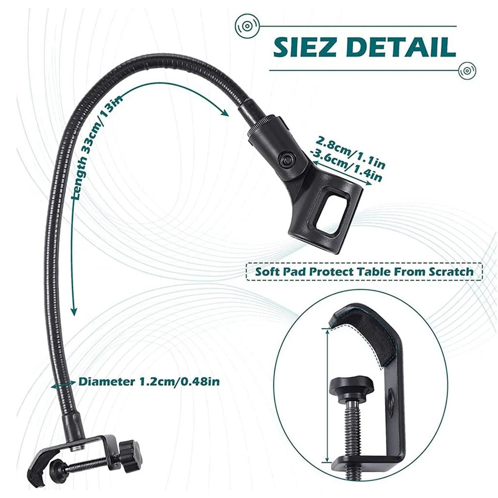 Microphone Stand Flexible Gooseneck Desk Mic Holder Microphone Arm Clamp