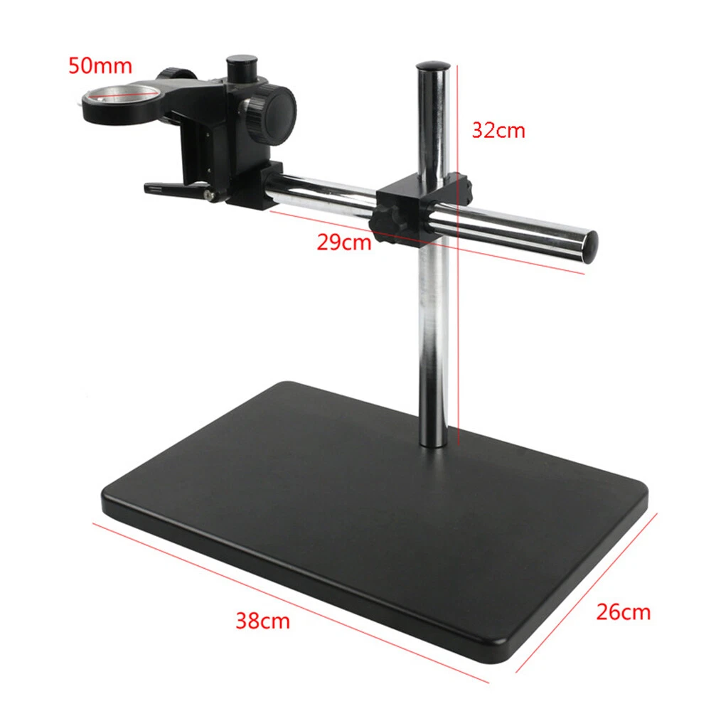 Description: 1. Need a Sturdy Boom Stand for reduced Vibration and Optimal Versatility? This stand provides what is needed! 2. This stand is with a counterweight on the opposite end of arm to counter the weight of your microscope head. This gives more stability compared with a common type of boom stand. 3. The multi-axis rotation feature allows this boom stand to locate your microscope head to most any position or angle. This can be a greatly needed tool when you have a hard-to-see location such as inspecting and searching for cracks on the solder of a circuit board. 4. We provide the boom stand only. This is not a complete system. A microscope head with optics is needed. You provide the head. 5. Easy Large-Sized Focusing Knobs on Both Sides of Focusing Holder. 6. Standard Size Focusing welcome Description: 1. Need a Sturdy Boom Stand for Reduced Vibration and Optimal Versatility? This Stand Provides What Is Needed! 2. This Stand Is with a Counterweight on the Opposite End of Arm to Counter the Weight of Your Microscope Head. This Gives More Stability Compared with a Common Type of Boom Stand. 3. the Multi-axis Rotation Feature Allows This Boom Stand to Locate Your Microscope Head to Most Any Position or Angle. This Can Be a Greatly Needed Tool When You Have a Hard-to-see Location Such As Inspecting and Searching for Cracks on the Solder of a Circuit Board. 4. We Provide the Boom Stand Only. This Is Not a Complete System. a Microscope Head with Optics Is Needed. You Provide the Head. 5. Easy Large-sized Focusing Knobs on Both Sides of Focusing Holder. 6. Standard Size Focusing Holder - Will Fit Scope Heads with Diameter of 50mm Feature: 1. Precision Die Casting Large Floor Size: 375 * 245 * 20mm 2. Total Height: 340mm 3. Column Diameter: ¢ 24.7mm 4. Lens Interface Diameter: ¢ 50mm 5. Height Adjustable Range: 10-265mm 6. Mobile Table: 200 * 158 * 26mm 7. Travel 60mm 8. Weight:3.5kg Package Included: 1 X Set of Digital Microscope Camera Table Stand Holder Payment Delivery details Terms of sales About us Contact us Payment We accept ebay payment 。 Fees such as import duties, taxes are not included in the item price or shipping costs. These charges are the buyer's responsibility. Delivery details Shipping: 2-9 working days to: USA Terms of sales We maintain high standards of excellence and strive for hundred percent customer satisfaction. Feedback is very important to us. We hope that you contact us immediately before you give neutral or negative feedback, so that we can address your concerns. It is impossible to address issues if we do not know about them! About us Your satis faction is our ultimate goal. We work hard to earn your trust and future business. Our certified technicians have tested each item before shipping. The unit comes with 1 year limited warranty on all manufacturing defects. a) If you receive a defective item, you may return it or ask for a discount. Please contact us within 14 days after you receive the package. b) What you returned must be intact and in its original packaging as re? u. Customer is responsible for shipping costs of the returned item. c) We will cover the cost of shipping back t with the shipping rate indicated in the registration page. We will send you a new unit or refund the full payment you paid. Thank you. Contact us Business Hour Business Hour: Monday To Friday: 8:30 AM to 5:00 PM (Beijing China time) Due to time zones, our reply to your questions may not be immediately. But within above working time, we will reply your email within 24 hours. If it's non-workdays, please kindly be patient and wait till Monday. Please contact us with ebay message. Please feel free to contact us if you have any questions. Monday To Friday: 8:30 AM to 5:00 PM (Beijing China time) Due to time zones, our reply to your questions may not be immediately. But within above working time, we will reply your email within 24 hours. If it's non-workdays, please kindly be patient and wait till Monday. Please contact us with ebay message. Please feel free to contact us if you have any questions.