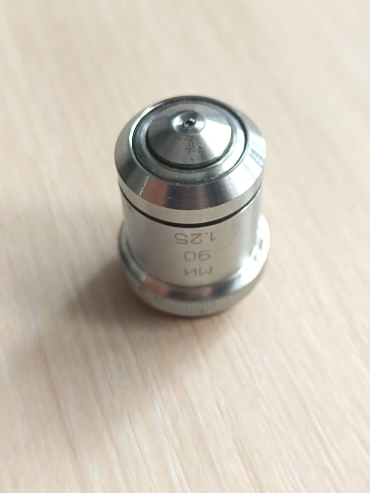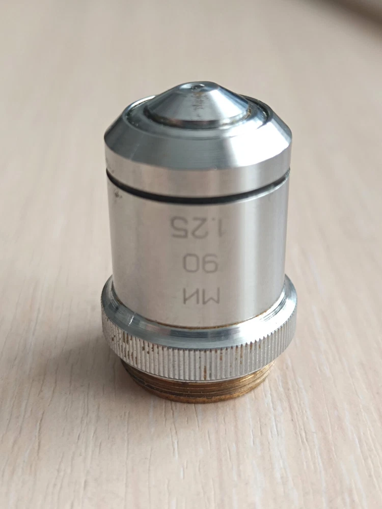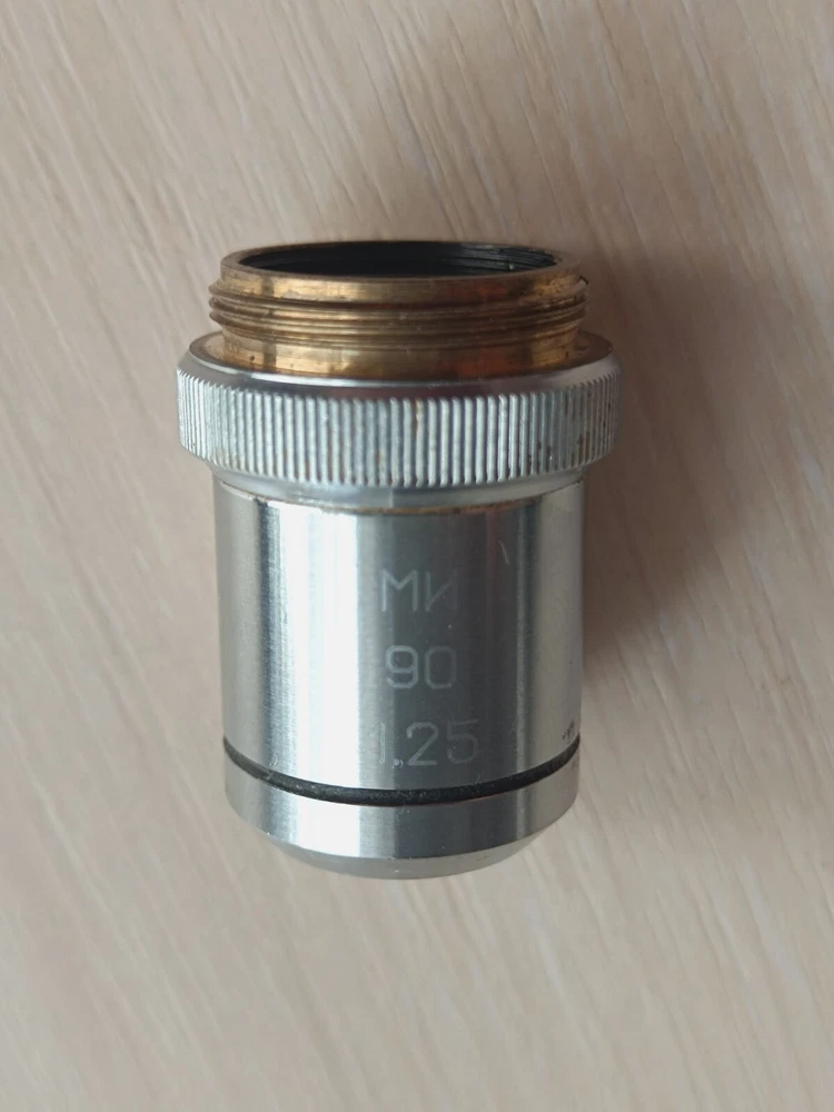 Lens LOMO MI 90x/1.25 for the Biolam microscope. This lens will help to expand the magnification range of your microscope. Specifications: Magnification: 90x Thread diameter: 20 mm Numerical aperture: 1.25 The lens is in excellent working order, the lenses are clean, there are minor scratches on the body, please see the photos.
