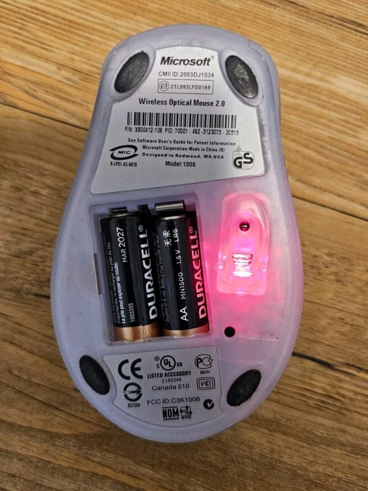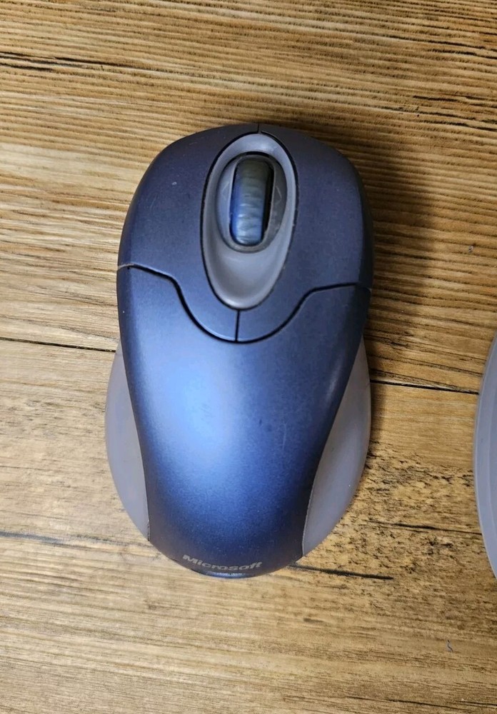 This Microsoft Wireless Optical Mouse 2.0 comes with its receiver and is perfect for your computer needs. The mouse is designed with optical tracking and has four buttons for easy use. It is compatible with wireless, wired, PS/2, and USB connectivity options. The blue color adds a touch of style to your setup. This item has been previously owned but is in good condition.