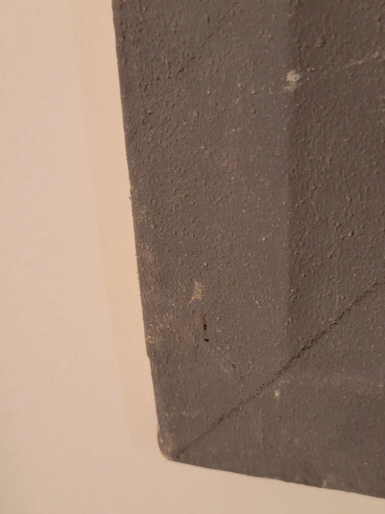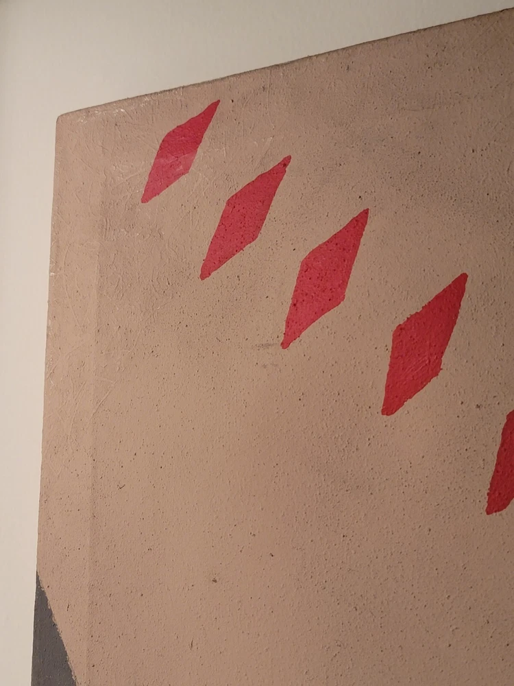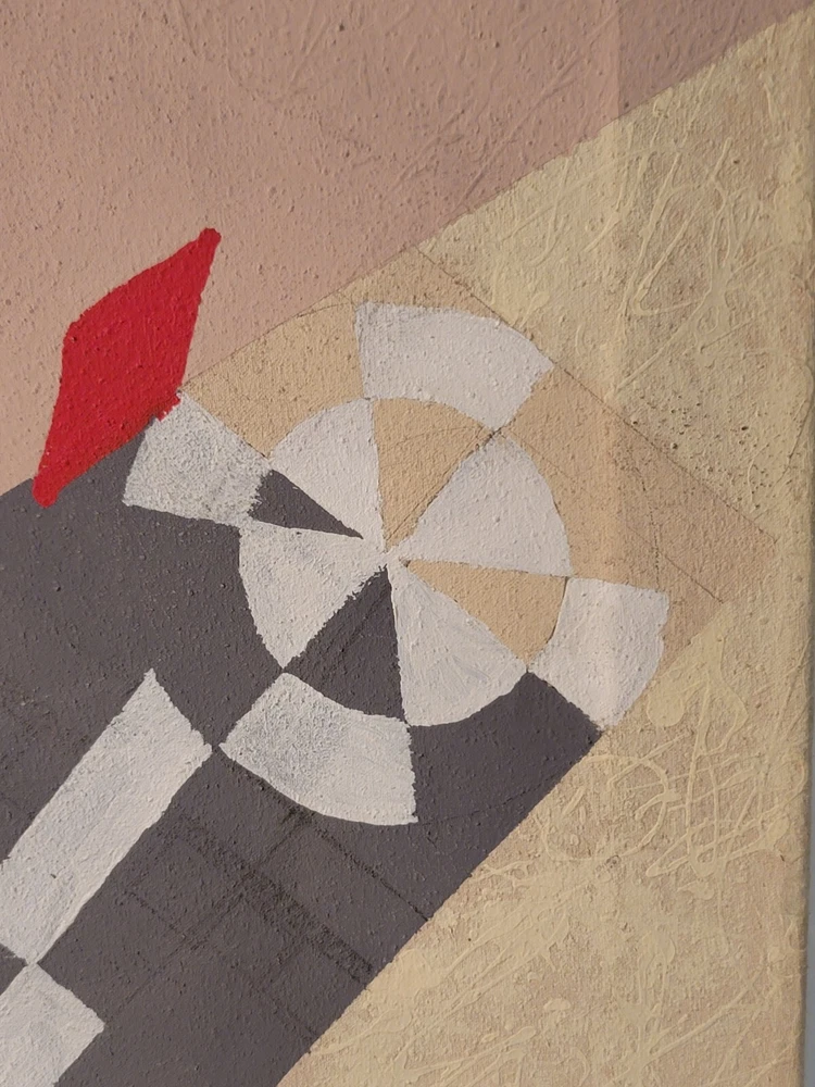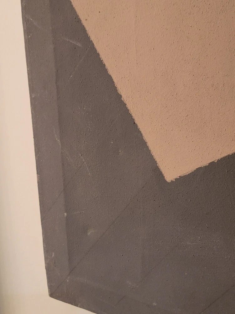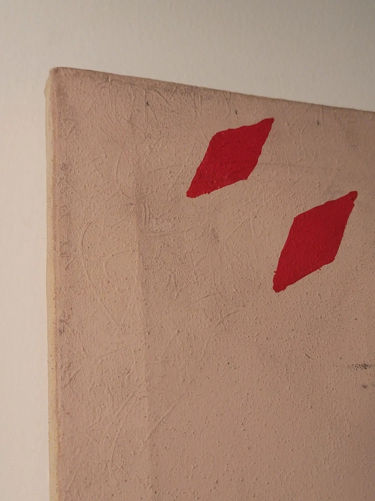 Sometimes you just see something that jumps out and speaks to you as being very special immediately. Sometimes you have to bond with the art to absorb its power and significance. The latter is the case with this very vintage abstract modernist painting from Palm Springs. Although it is unsigned and the artist is unknown to me, there is no question in my mind but that this one belongs in the Whitney or The Broad or in a prestigious Japanese museum of modern art. The intriguing vintage stamps on the canvas are very puzzling to me and add to the intrigue and mystery of the piece, but I am sure art experts will quickly recognize their significance to the painting. The canvas measures 26 x 35 inches and is in exactly the good vintage condition you would expect for a treasured painting appreciated and much enjoyed for so many years, as shown in the photos. The painting exudes hints of Kandinsky and the avant-garde artists of the period, but seems to be a bit more minimalist to have been one of his.