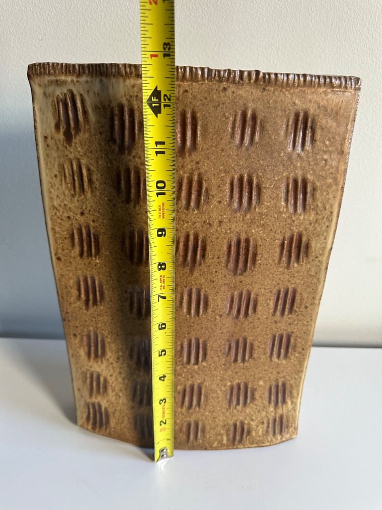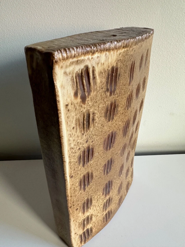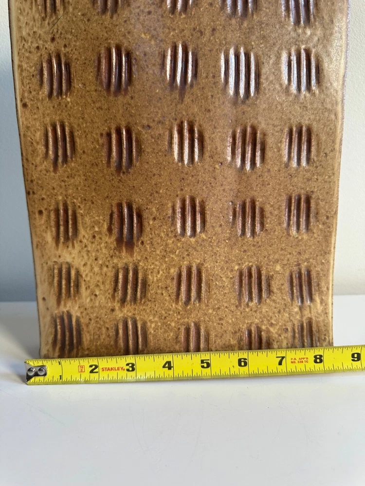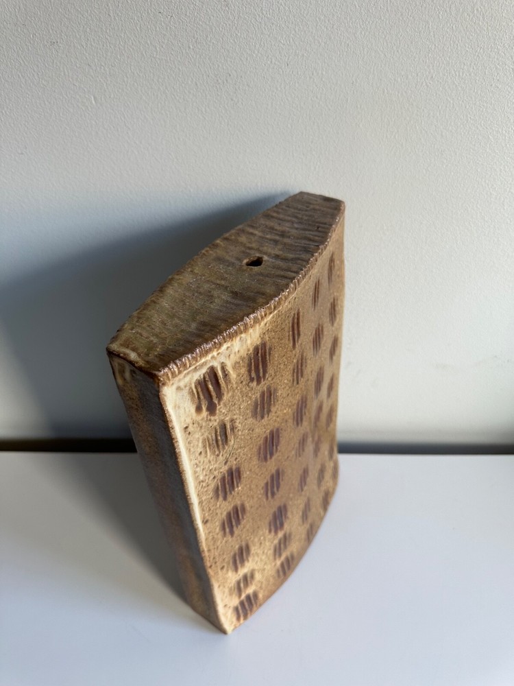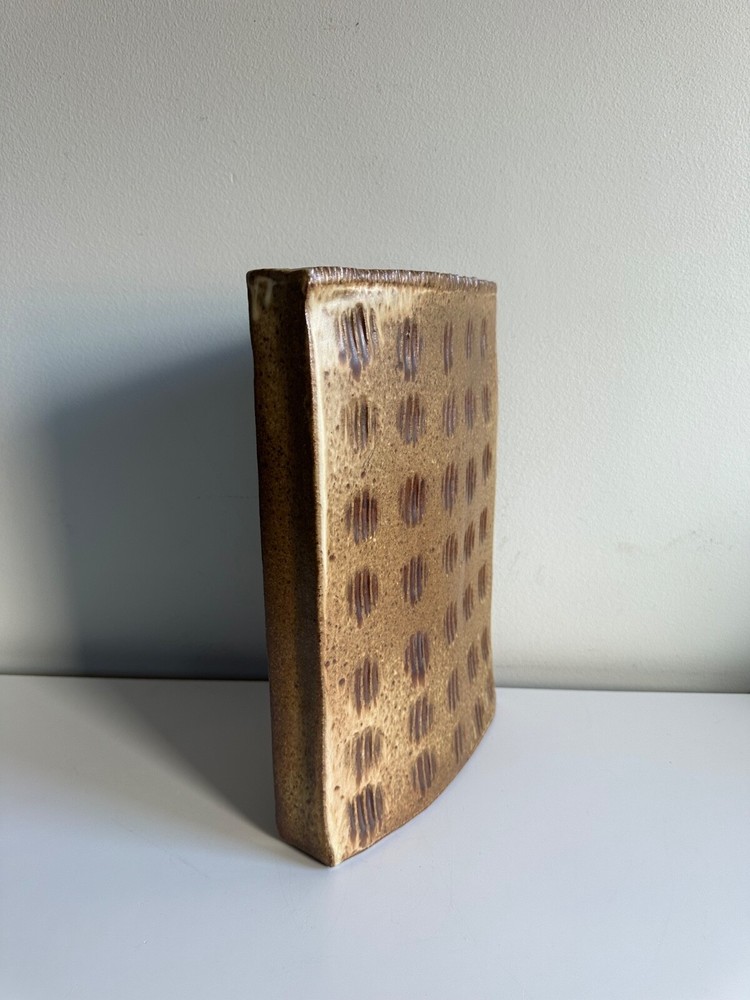 Mid Century Abstract Textured Ceramic Slab Vase Japanese Inspired Rectangular Design