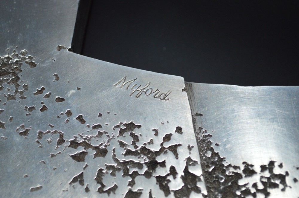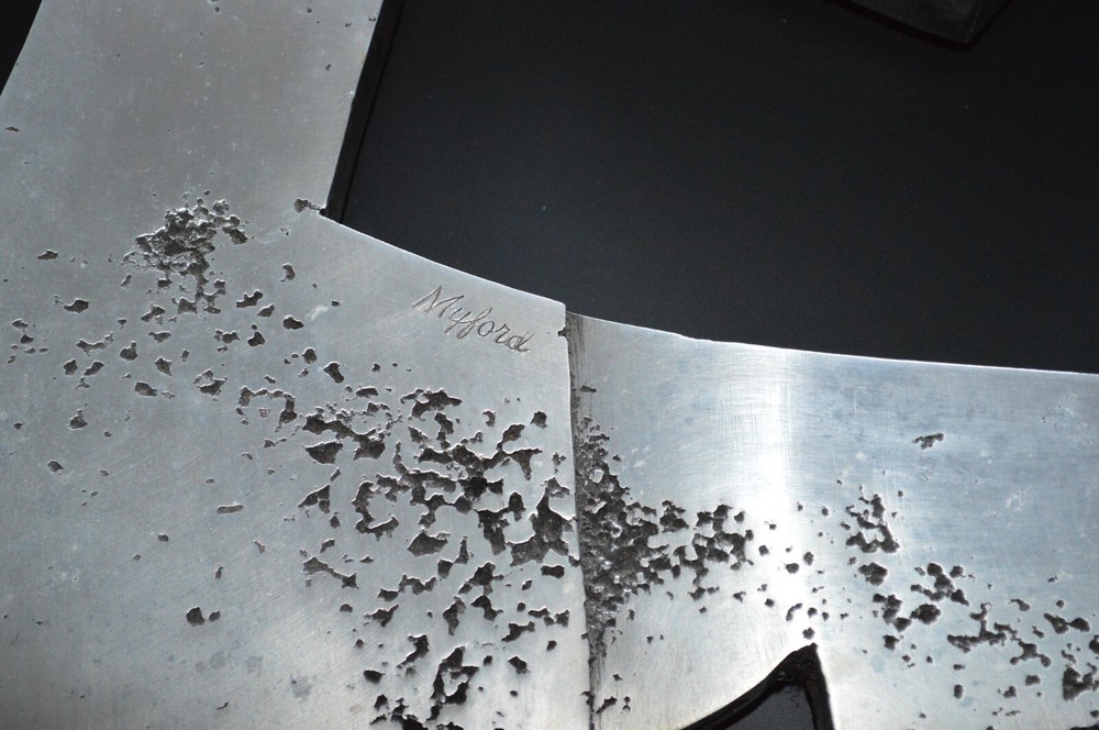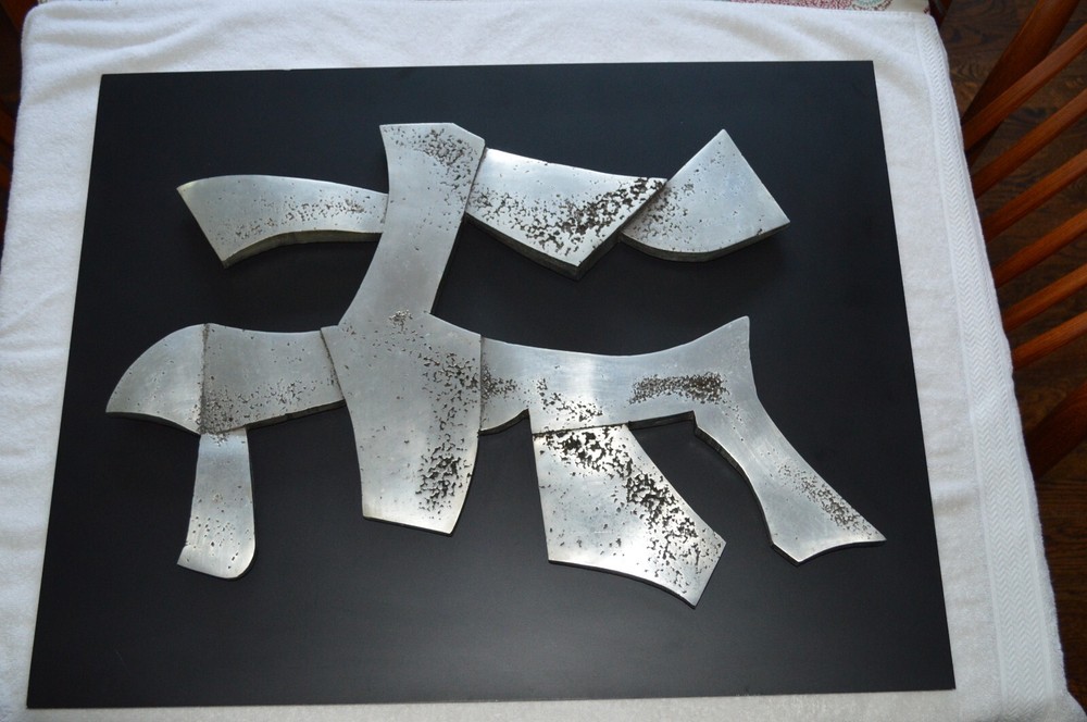 Purchased from a local Mid Century Estate. Cast Aluminum (magnet does not stick). The Sculpture is attached to an aluminum sheet that measures approx. 29 inches long x 23 inches high. This wall art weighs over 20 pounds. You can find information about James Myford on the internet. Fast and free shipping.