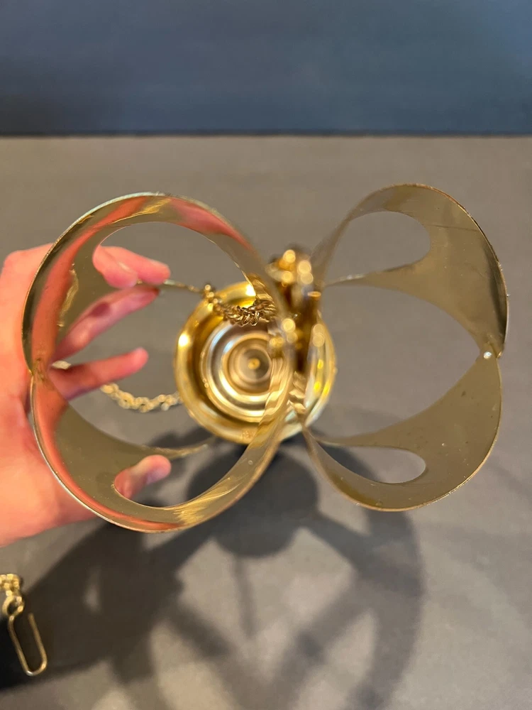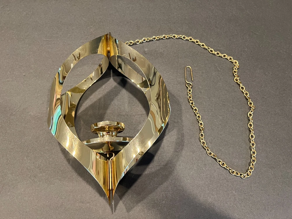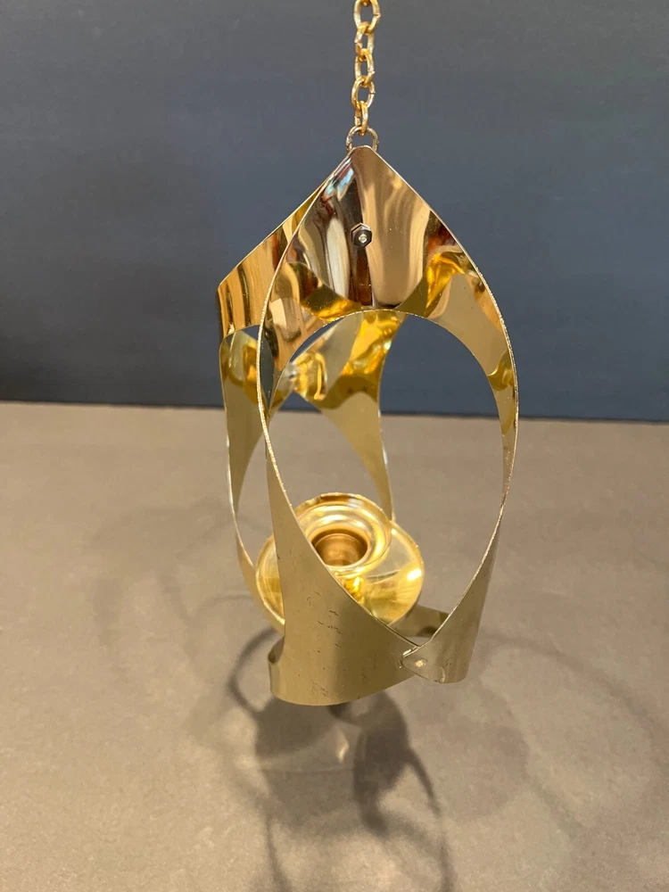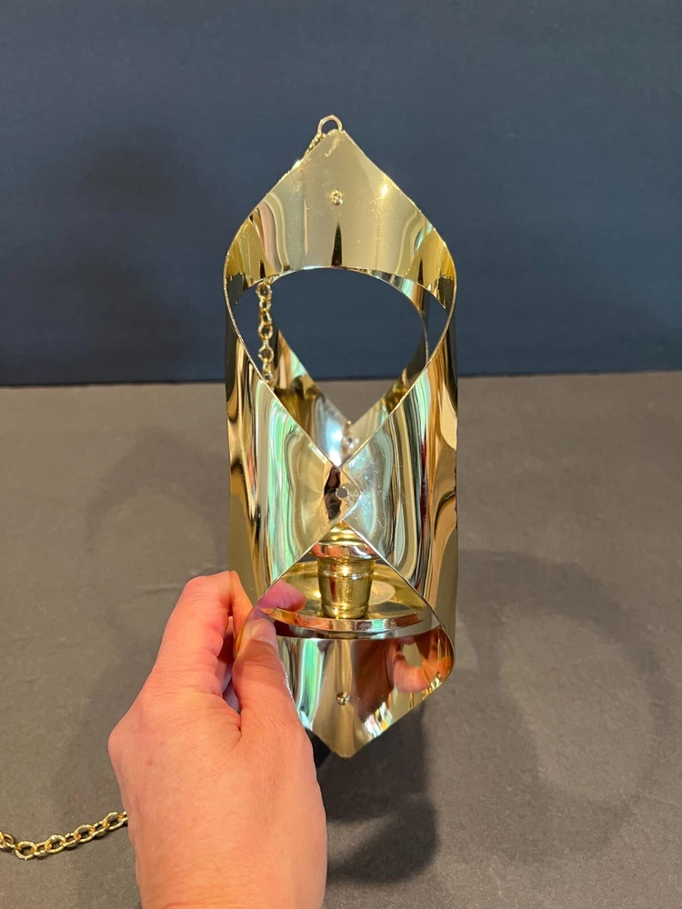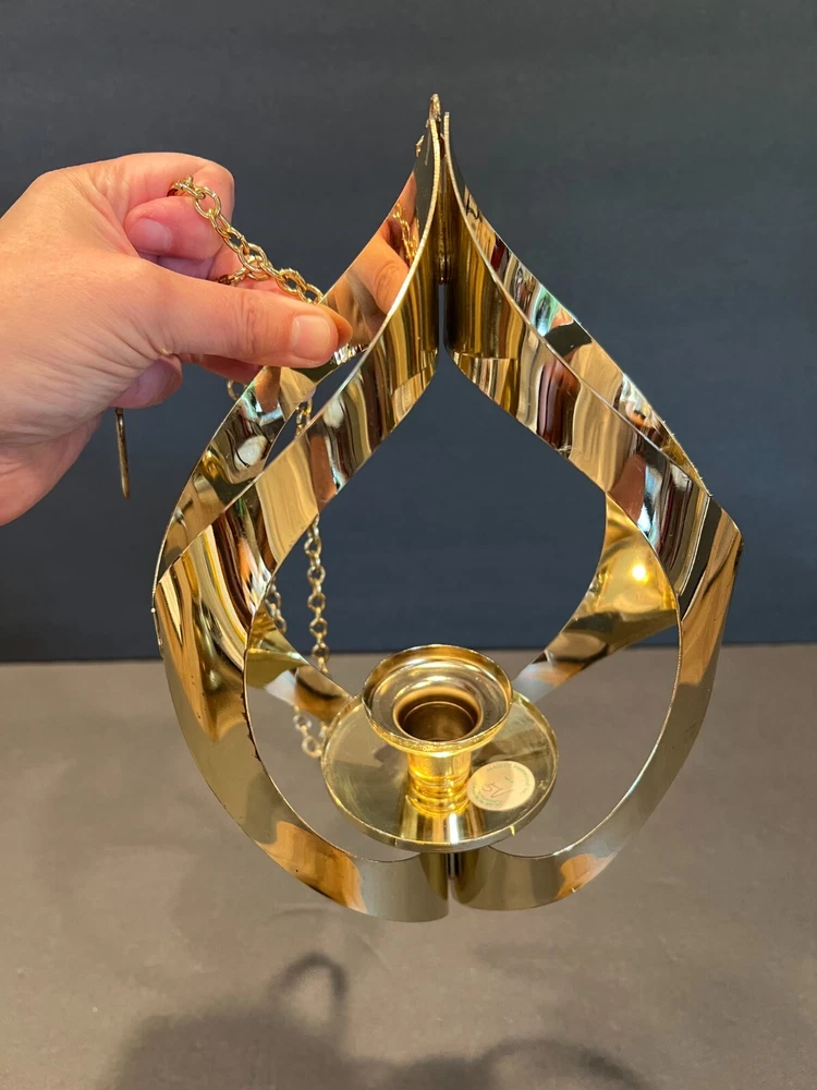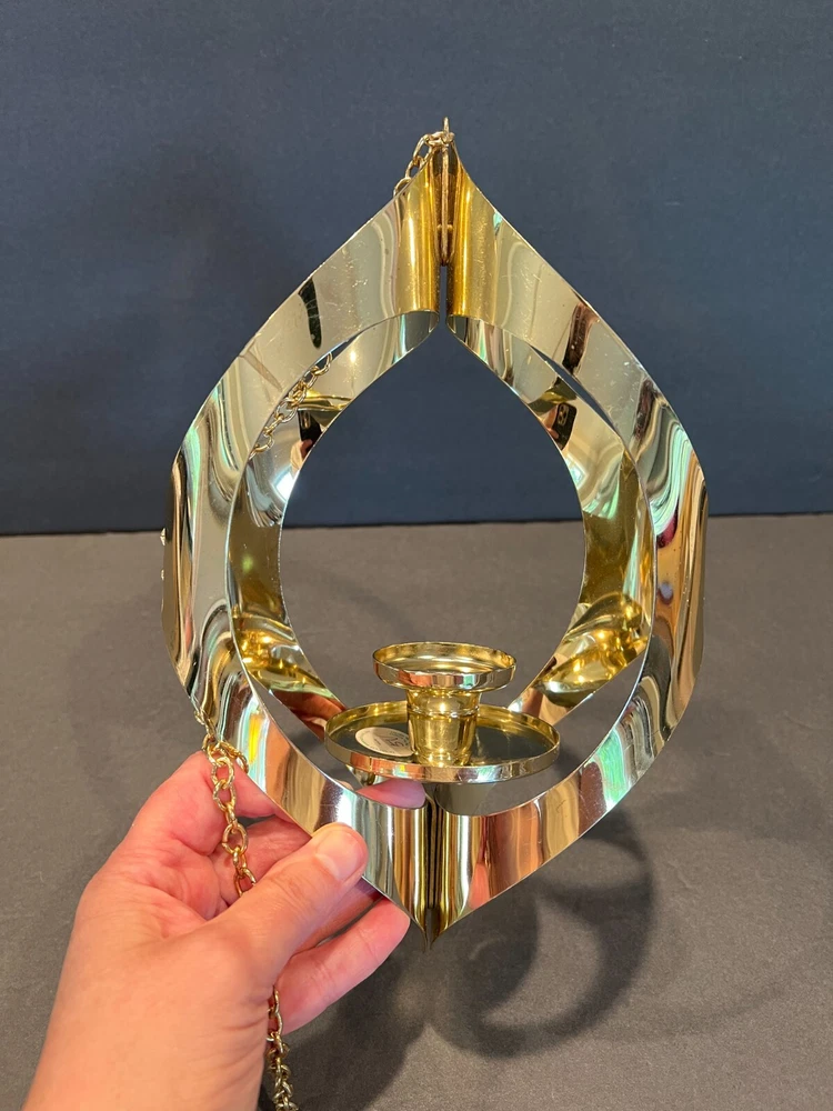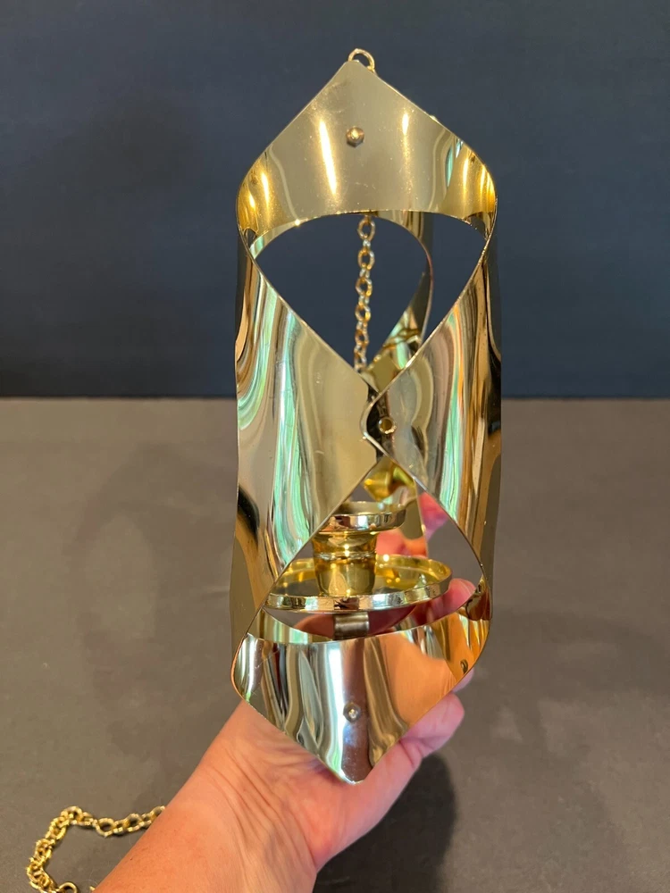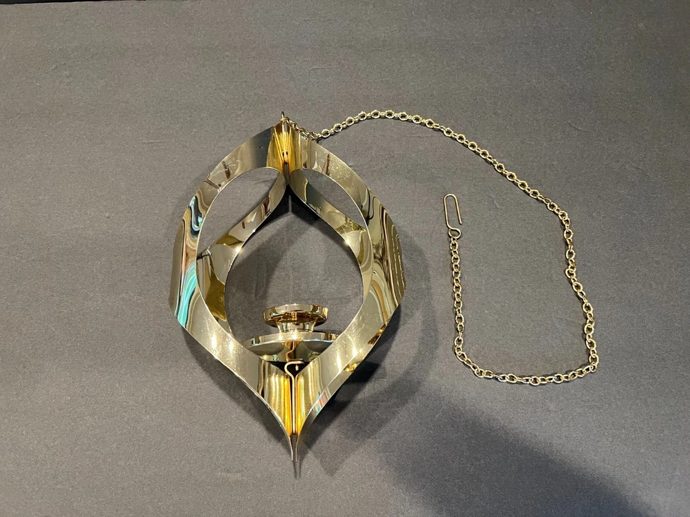 Time Period Manufactured: 1960-1969 Original/Reproduction: Original Item Depth: 3 in Brand: Mascot International Style: Modern Era: Mid 20th Century (1941-1969) Department: Adults Seller Notes: “Excellent Condition; Minor Scratching; see pics” Material: Metal Chain Length: 28.5 in including the Hanger (1.75 in L) Item Height: 11 in from fixture top to bottom Color: Gold Size: Medium Finish: Metallic Candle Height: Max 3 in Item Weight: 10.2 ozs Suitable For: Mini Candle Features: 3D Effect, High Gloss Country/Region of Manufacture: United States Antique: No Candle Holder Inner Dimensions: 1 in x 1 in x 1 in Subject: Mid-Century Candleholder Number in Pack: 1 Type: Candle Holder Shape: Asymmetrical Theme: 60's Mid-Century Modern Customized: No Item Width: 7 in Candle Holder Top Dimensions: 2 in x 2 in x 2 in Care Instructions: Clean with Damp Cloth, Easy Care Room: Any Room Occasion: All Occasions Handmade: No
