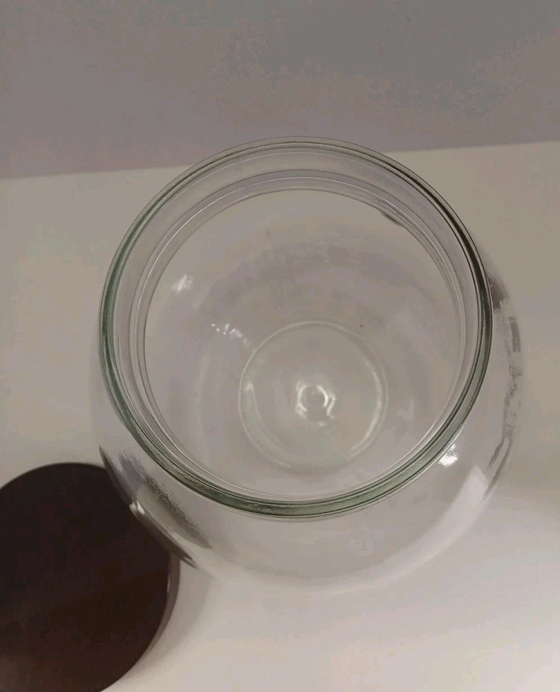 This Vintage Glass Bowl Cookie Jar is a charming addition to any kitchen or collection, with a mid-century modern design that adds a touch of retro flair. Standing at 8 inches tall, this clear glass jar is perfect for storing cookies or other small treats while adding a vintage aesthetic to your home decor. Its unique fish bowl shape adds character to its style, making it a standout piece in any kitchen storage and organization setup.