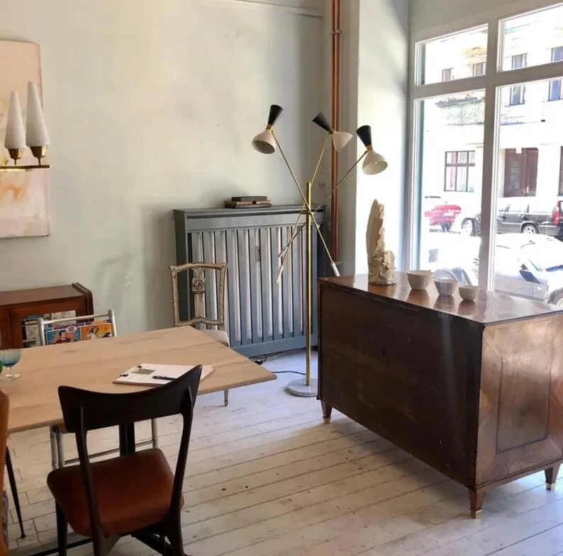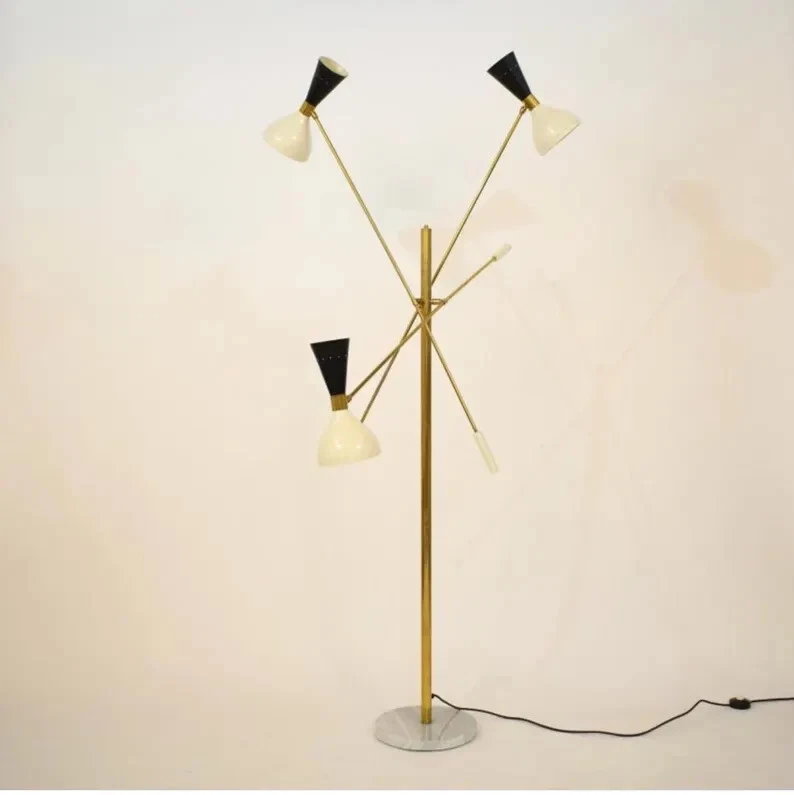 Mid Century Stilnovo Style Italian Modern Floor Lamp With Three Brass Arm With Marble Base Width: 48 inches Height: 48 inches Depth: 48 inches Marble base 12 inchs Description: Mid Century Stilnovo Style Italian Modern Floor Lamp With Three Brass Arm With Marble Base seamlessly blend modern aesthetics with timeless elegance. Crafted by skilled artisans, this single- light articulated sconce is meticulously constructed to bring sophistication and warmth to any room. Featuring a sleek brass finish, The lamp exudes understated luxury, while its articulated arm allows for customizable lighting angles, providing both functionality and versatility. Whether illuminating a cozy reading nook or adding ambiance to a contemporary living space, a discerning homeowner, or an interior decorator seeking to elevate your projects, this Stilnovo- inspired wall lamp is sure to make a lasting impression. Illuminate your home with style and sophistication. Invest in our handmade Stilnovo brass wall lamp today and experience the perfect blend of craftsmanship and elegance. Each component of this chandelier is carefully handmade, ensuring a unique piece that adds character and charm to any room. The curved shade design adds a touch of sophistication, while the vintage-inspired aesthetic brings warmth and nostalgia to your decor. Constructed from high-quality brass, this Sputnik-style light fixture boasts durability and longevity, making it a timeless addition to your home. The mid-century modern design pays homage to iconic design elements while offering a fresh interpretation that suits modern interiors. Choose from various finishes such as antique patina, polished brass, raw brass, brushed brass, black (blackened brass, antique black), and chrome (polished or brushed). We also provide a stunning range of electrophoretic lacquered colors for shades. Our selection of finishes includes antique patina, polished brass, raw brass, brushed brass, black (blackened brass, antique black), and chrome (polished or brushed). Additionally, explore our captivating array of electrophoretic lacquered colors for shades. Available in a variety of finishes like antique patina, polished brass, raw brass, brushed brass, black (blackened brass, antique black), and chrome (polished or brushed), our products also come with the option of electrophoretic lacquered colors for shades, providing a beautiful selection to choose from. Meticulously crafted in our workshop, our products are carefully handmade using 18-gauge brass sheets and UL-listed components. Our process prioritizes the preservation of the material's original essence and artisanal charm, ensuring a high-quality outcome. Crafted with precision in our workshop, each piece is lovingly handmade using 18-gauge brass sheets and components that meet UL-listed standards. We handle our raw materials with care to maintain their inherent texture and artisanal integrity throughout the manufacturing process. - comes hardwired and includes all installation hardware - requires simple assembly Bulbs - requires ONE 25- 75 watt bulb (not included) - E26 (USA and Canada ) or E27 ( UK and Europe) socket type bulb - incandescent bulbs, energy saving, LED bulbs. - bulbs are not included - dimmer switch compatible if fitted with appropriate dimmable bulbs. PERSONALISATION; - If you'd like the sconce as a plug in, we ask that you please make notes in the 'Personalisation' box at checkout as follows- - request for plug -n version - colour of flex ( brown, black or white fabric-covered flex) - length of flex